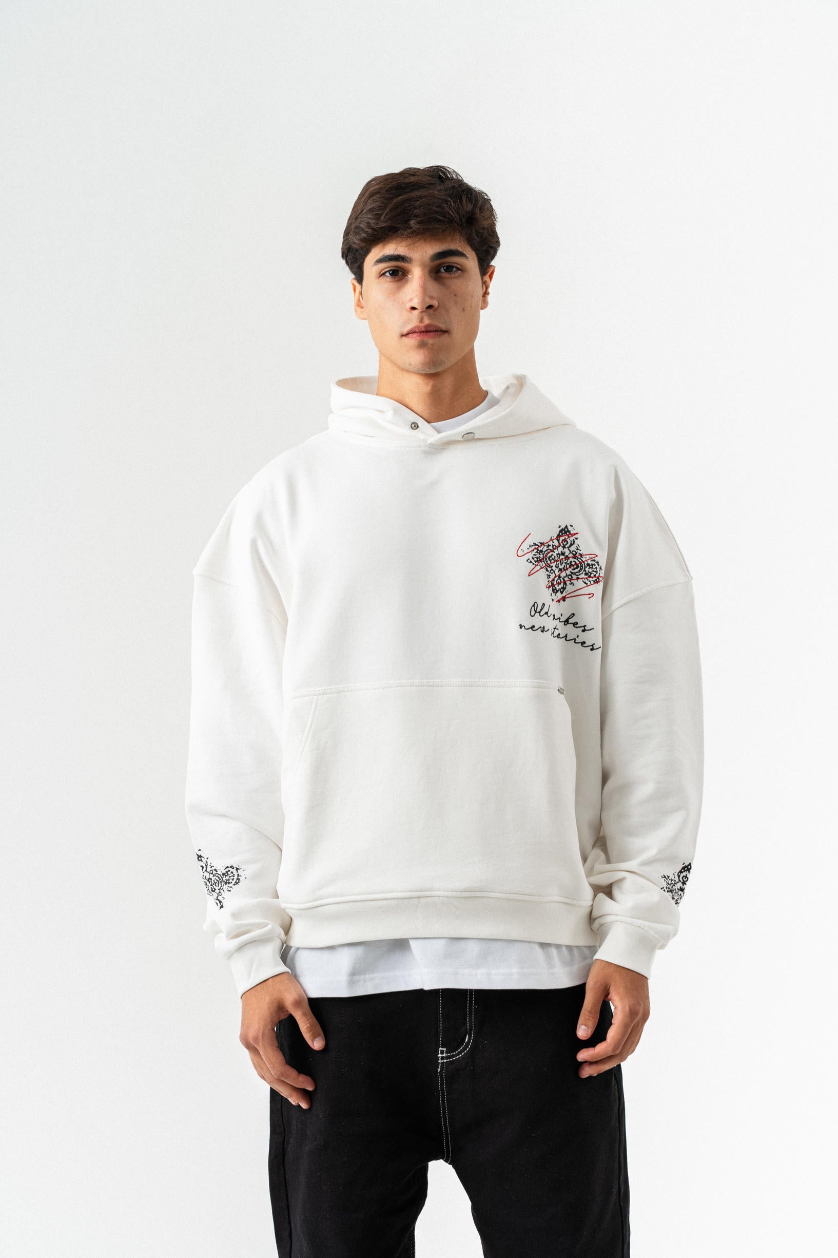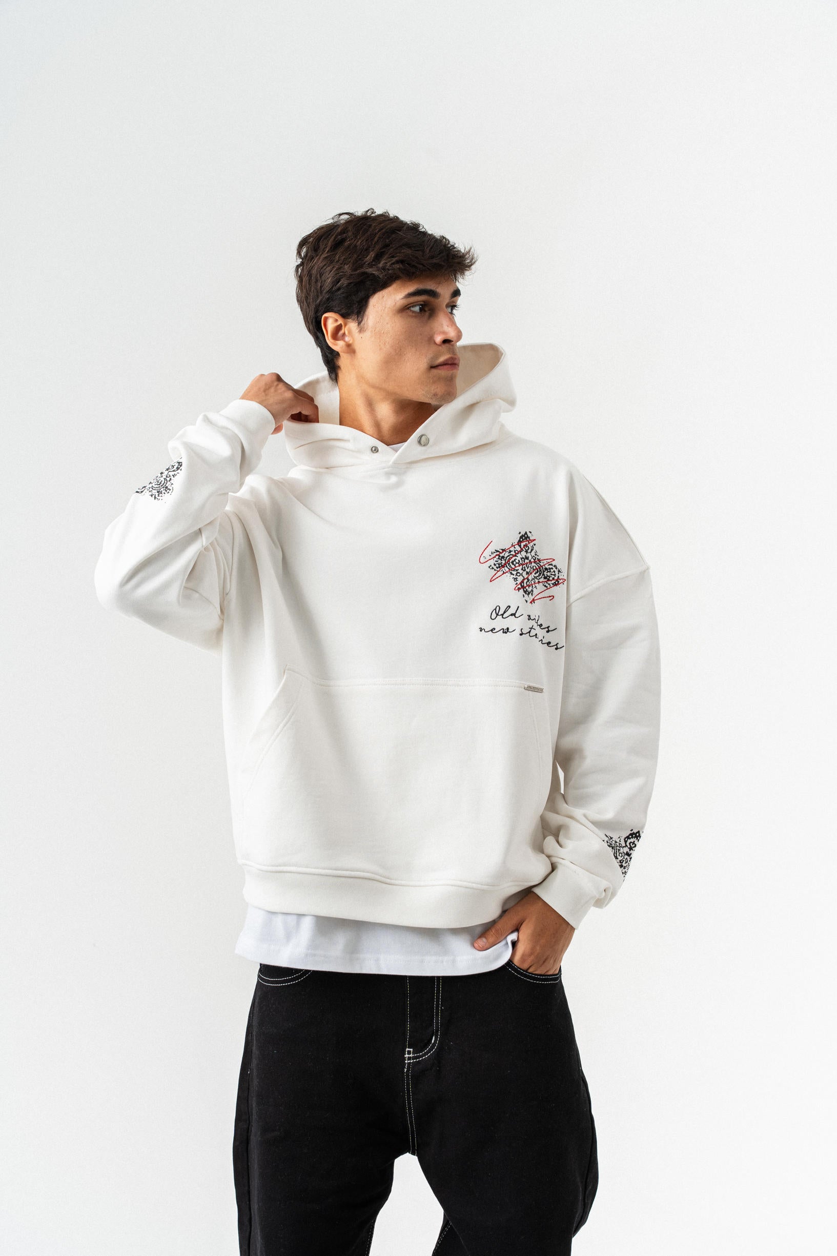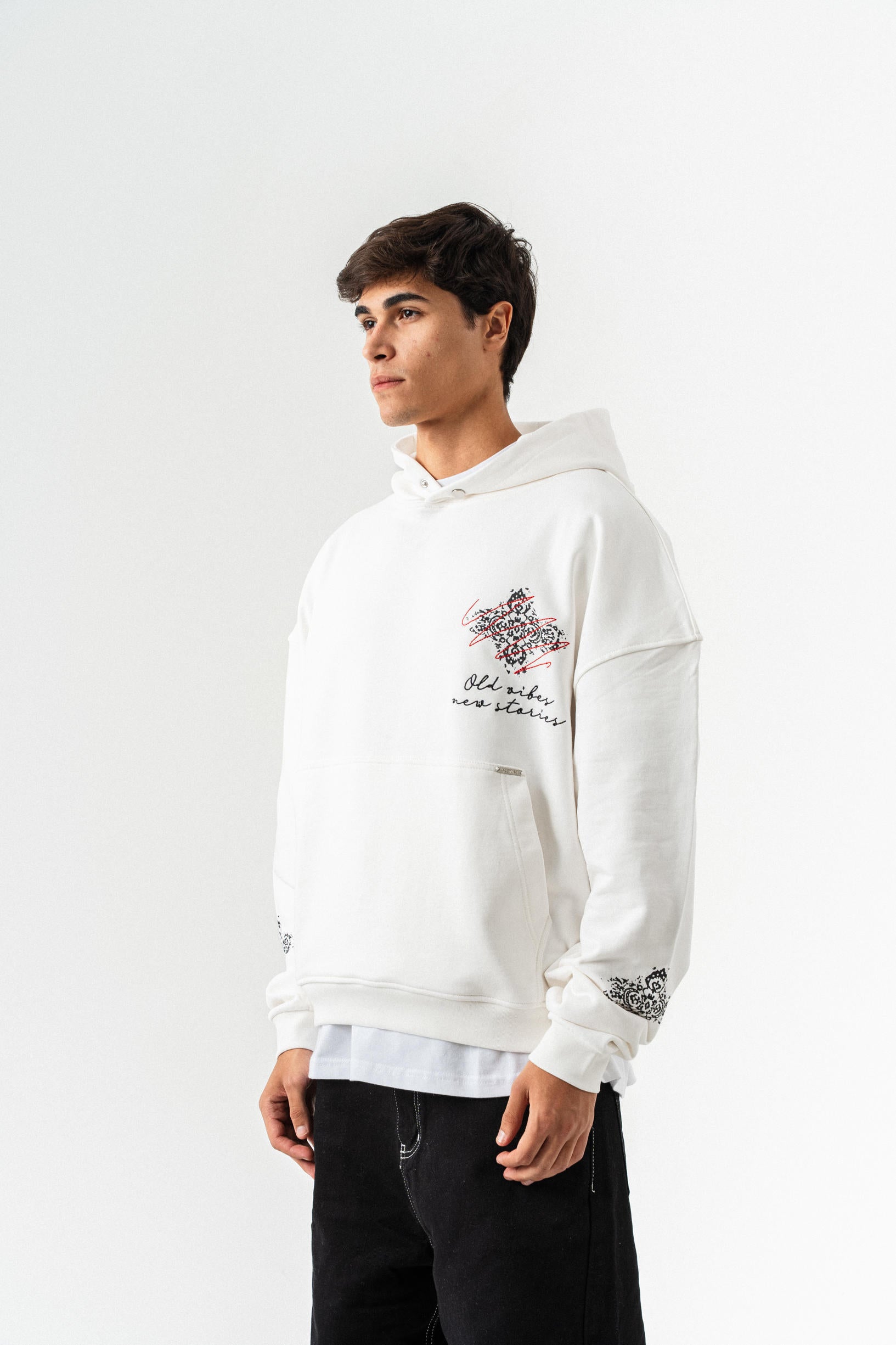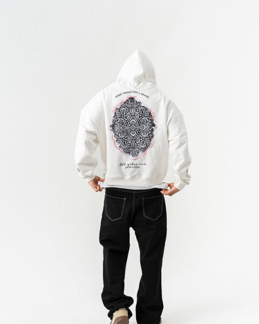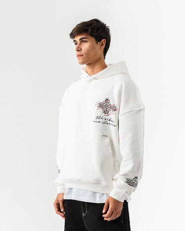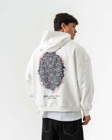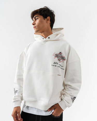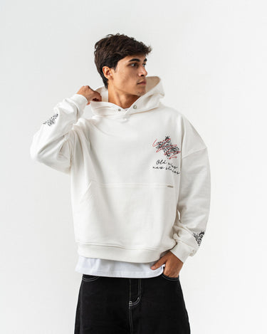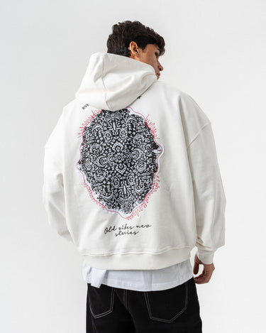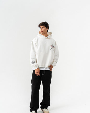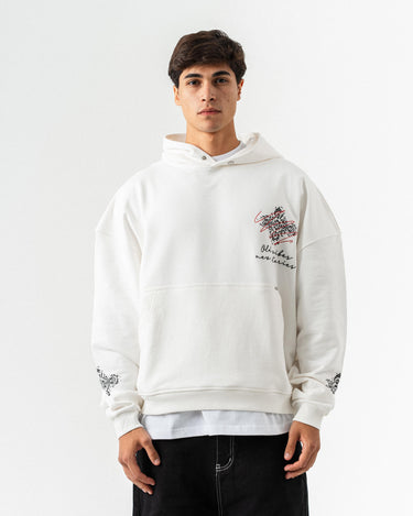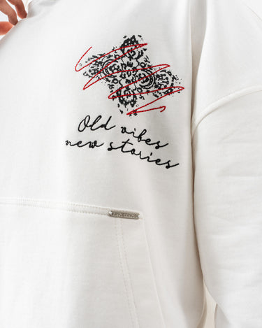 Nakış Detaylı Kapüşonlu Oversize Sweatshirt - Beyaz