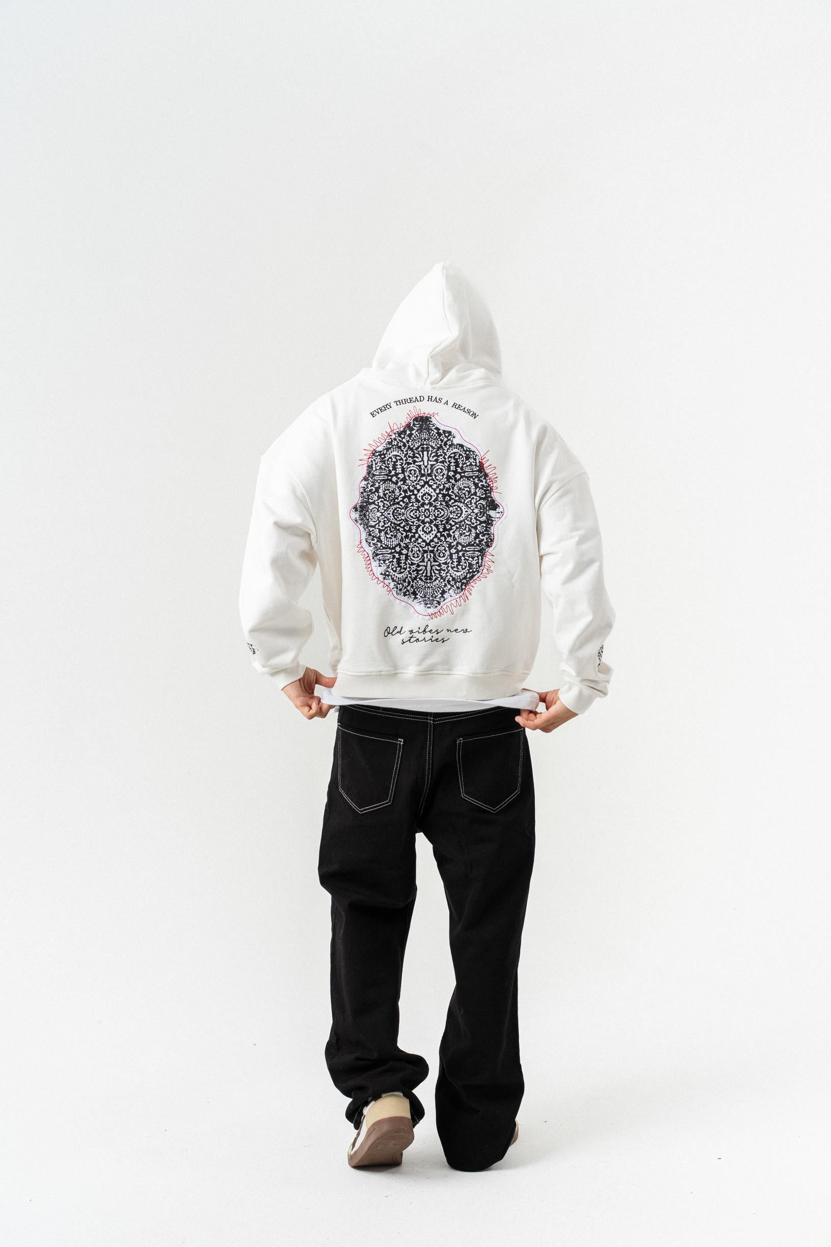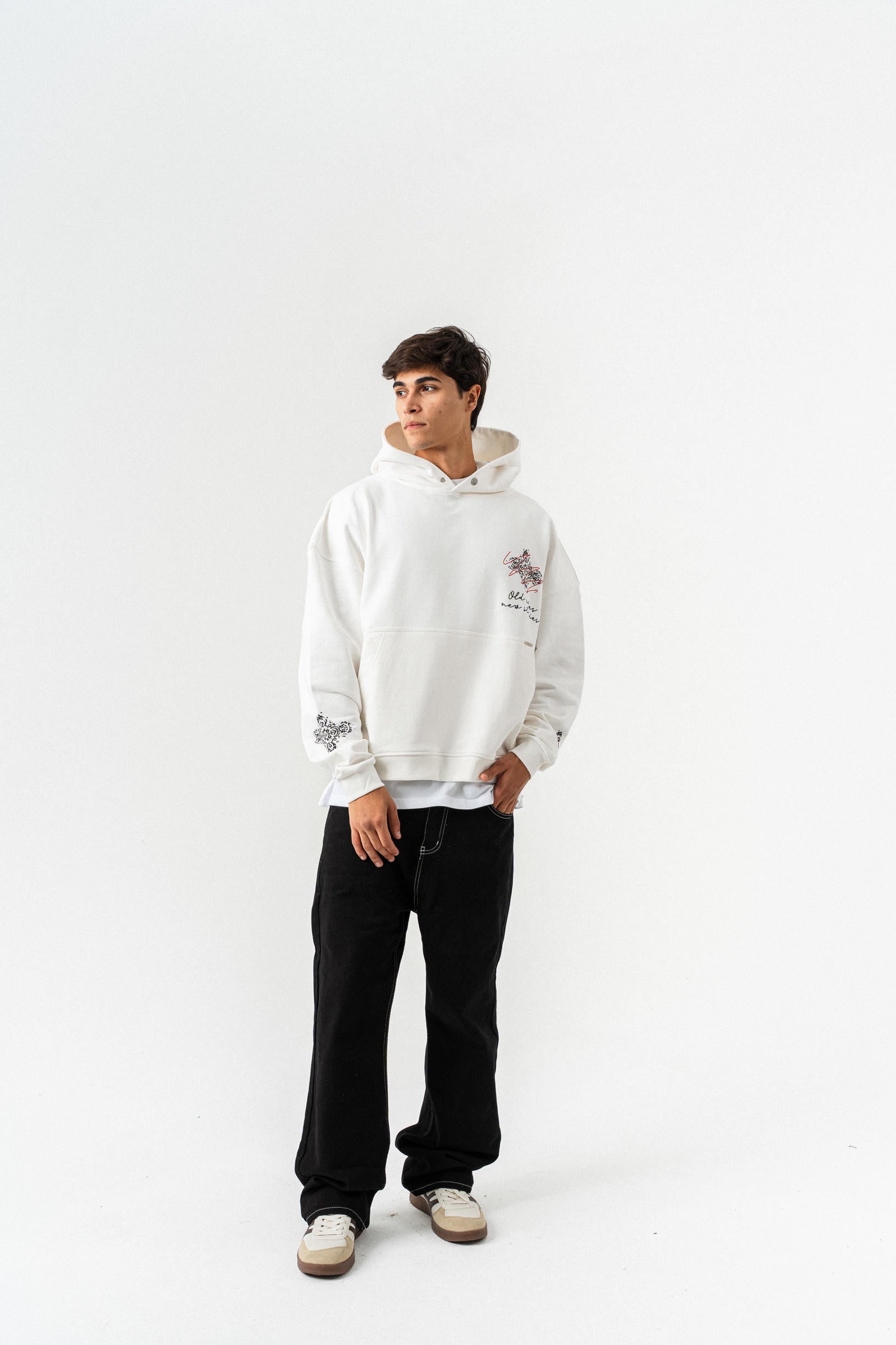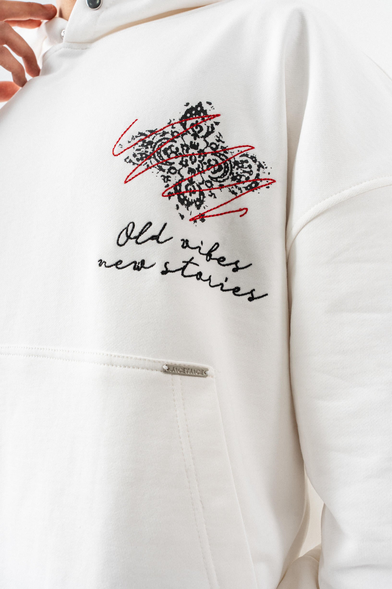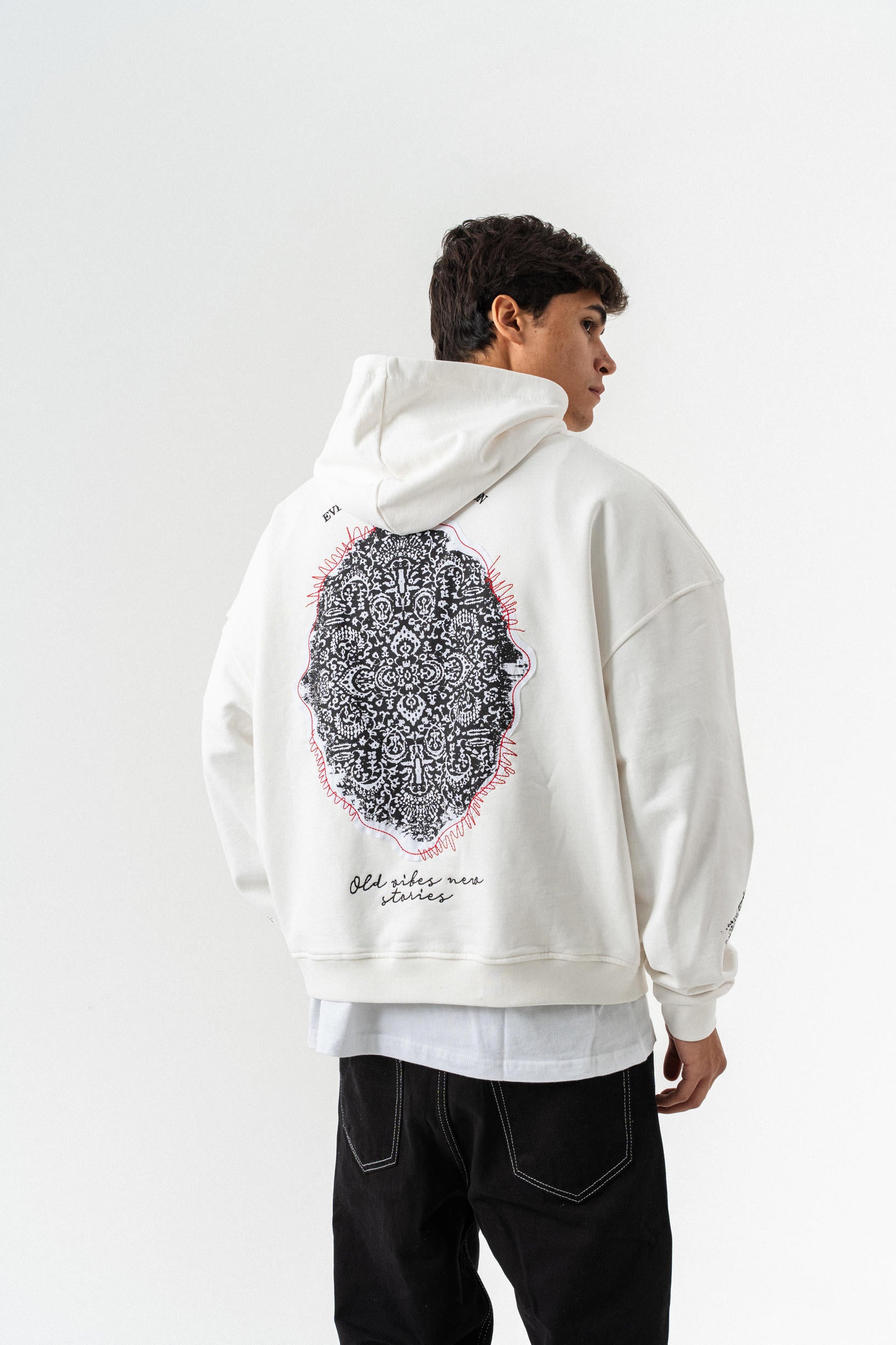 Nakış Detaylı Kapüşonlu Oversize Sweatshirt - Beyaz