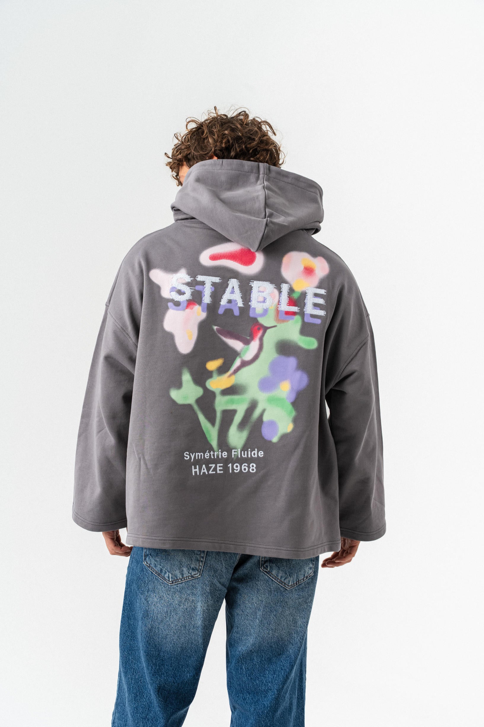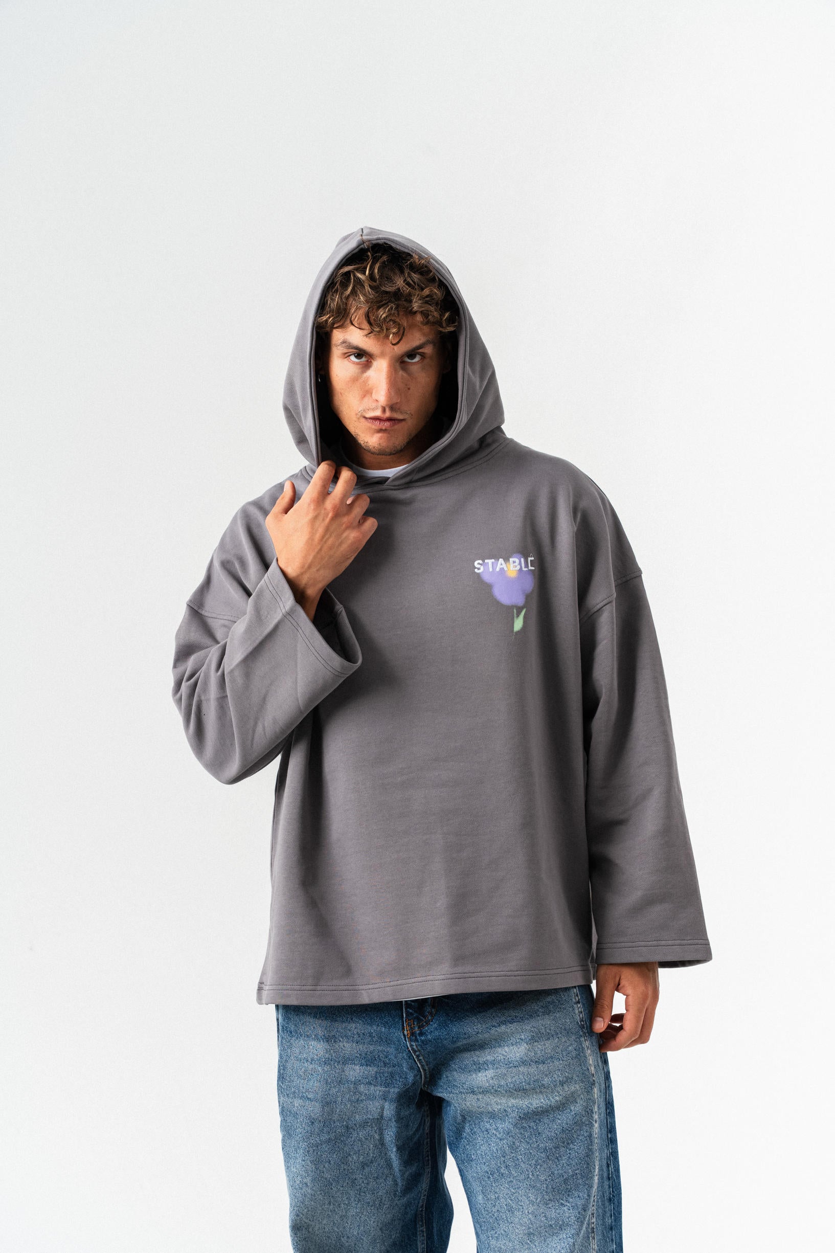 Stable Kapüşonlu Oversize Sweatshirt - Füme