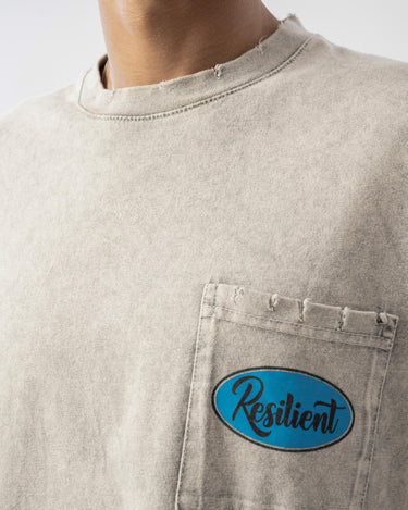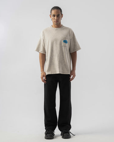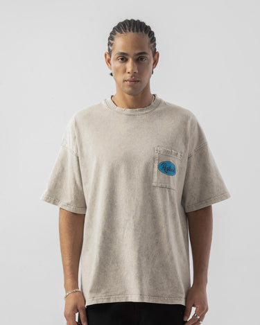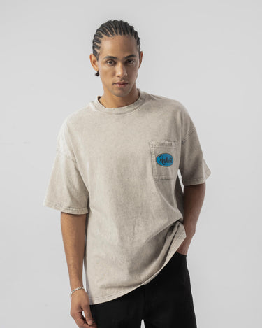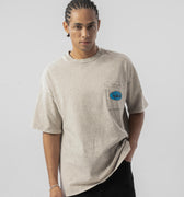 Cep Detaylı Yıkamalı Oversize T-shirt - Bej
