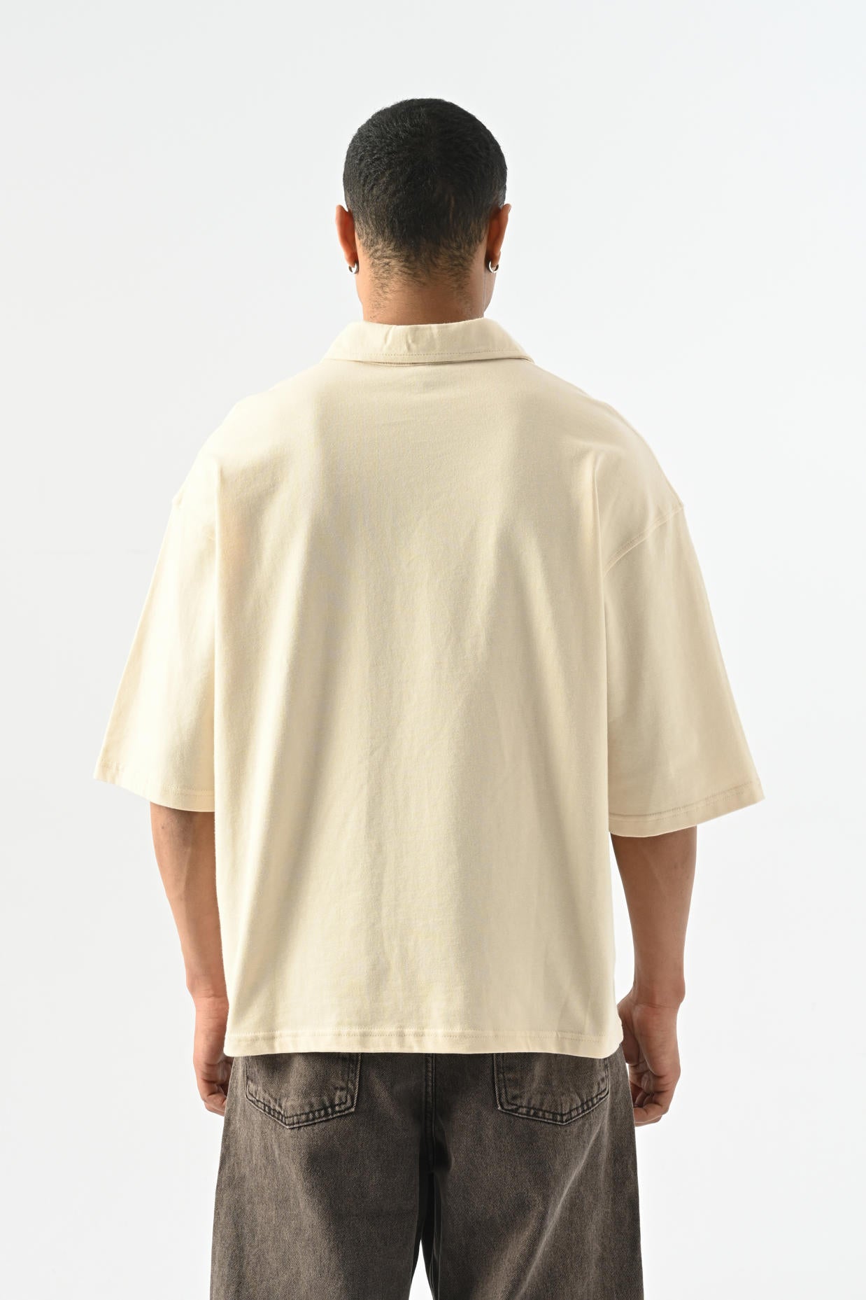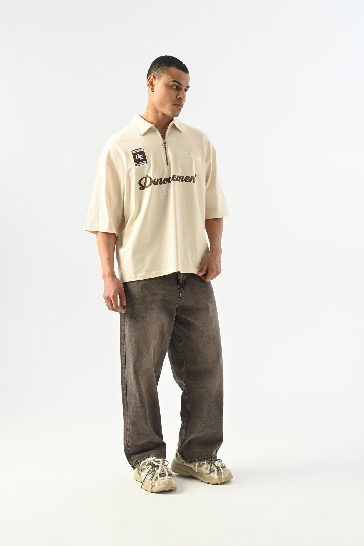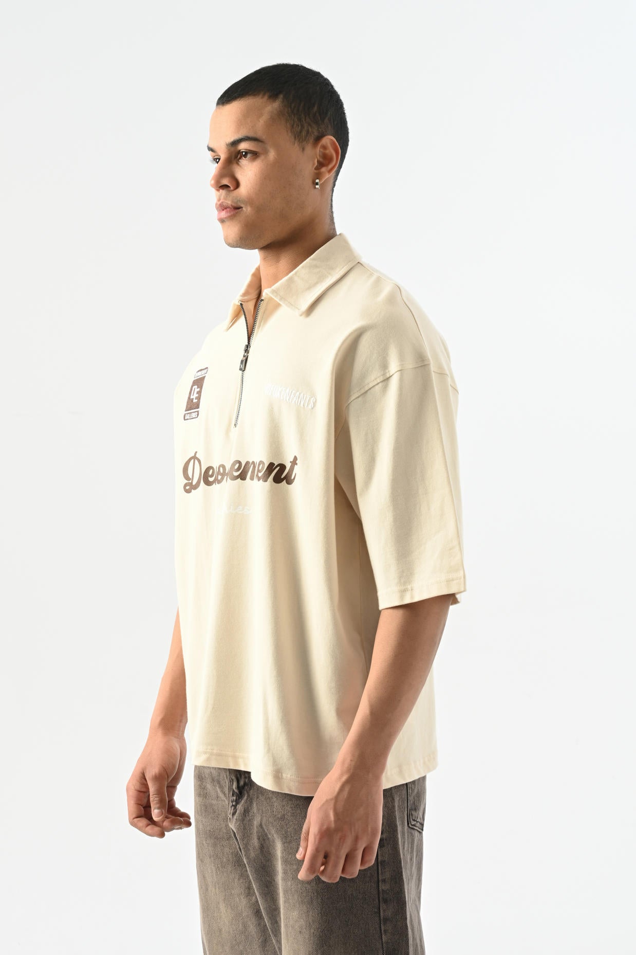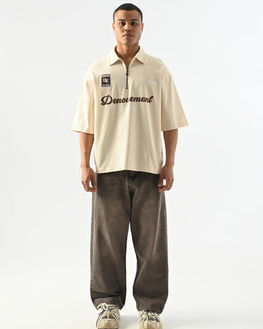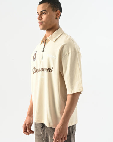Denouement Yarım Fermuarlı Polo Yaka T-shirt - Bej