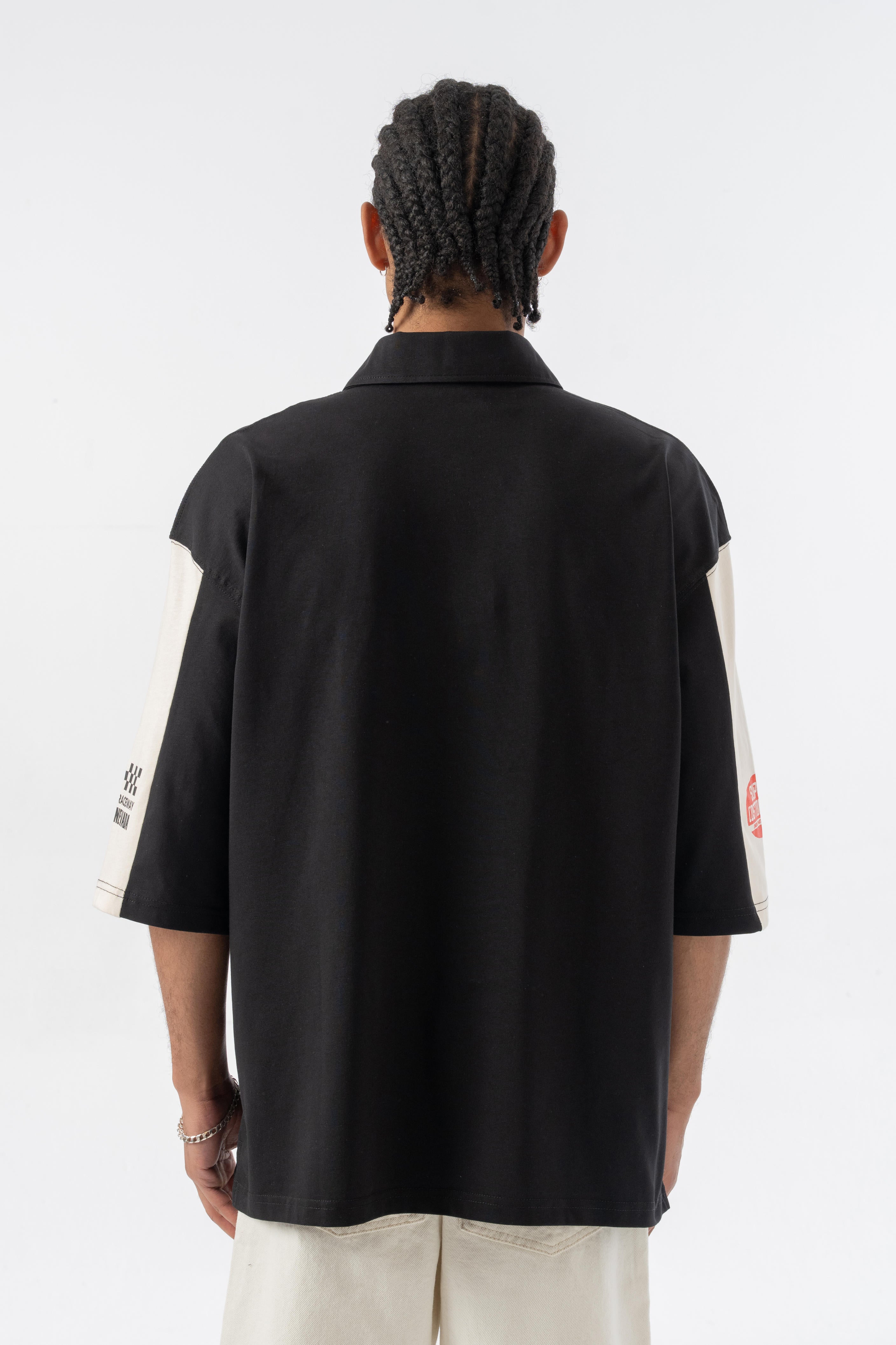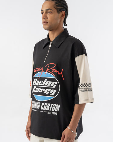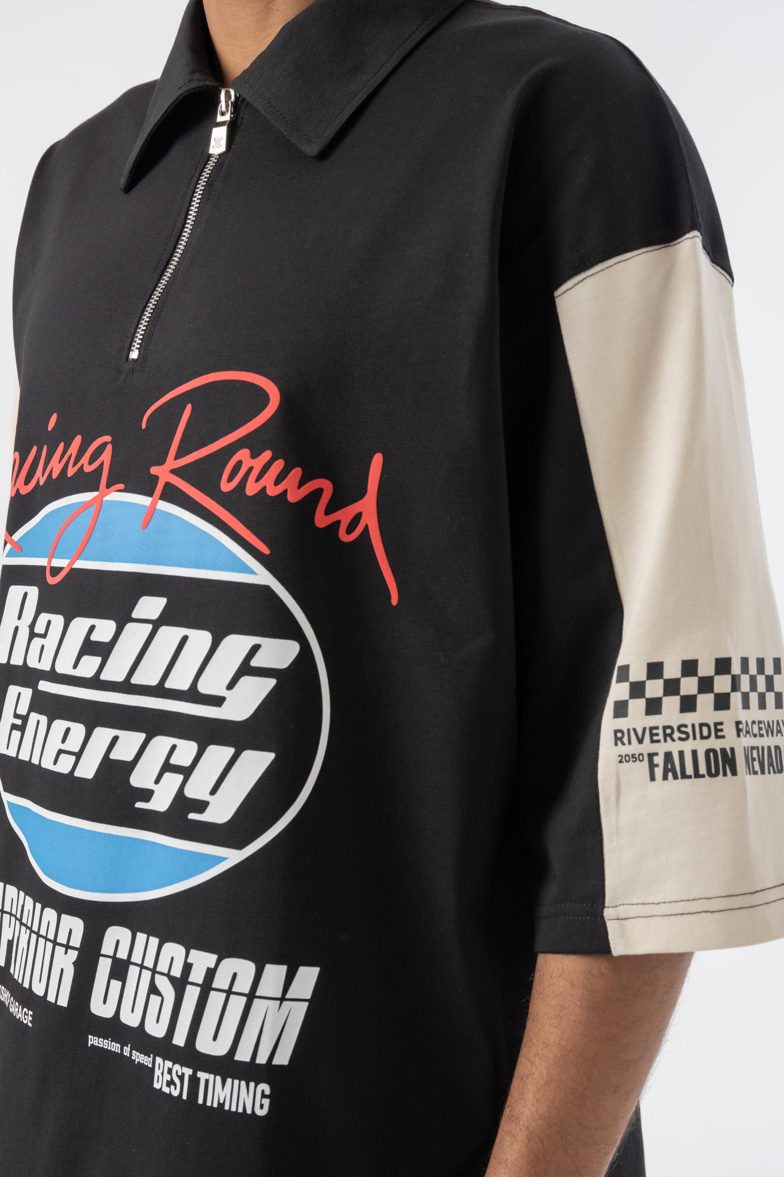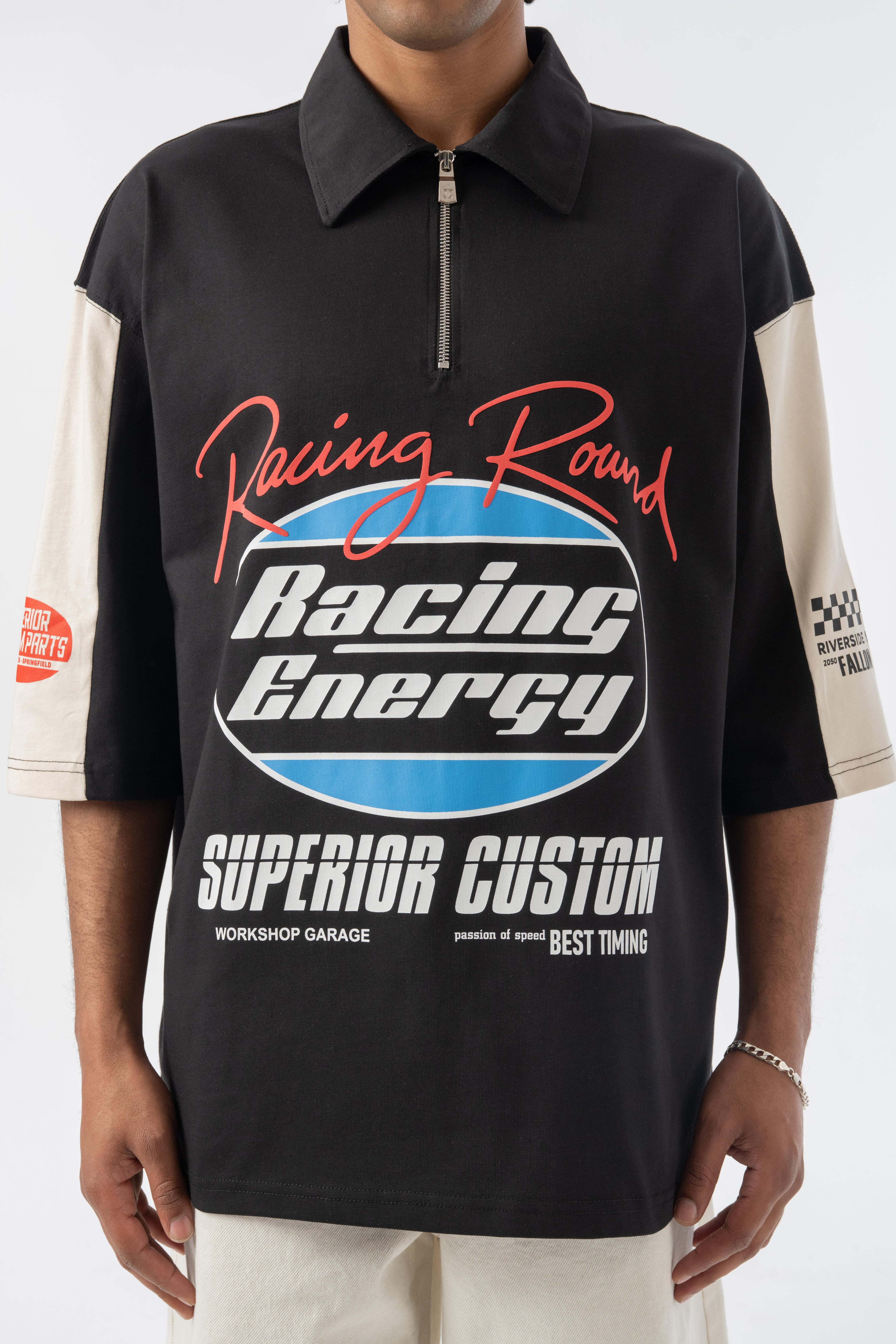 Racing Energy Polo Yaka Oversize T-shirt- Siyah