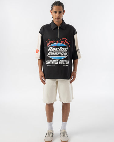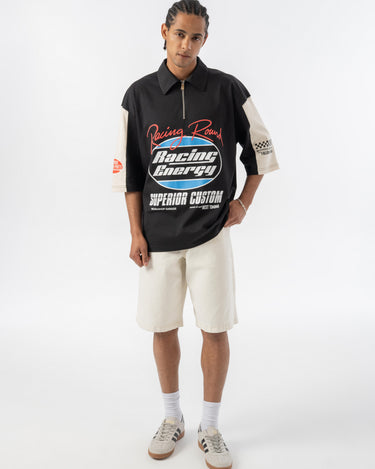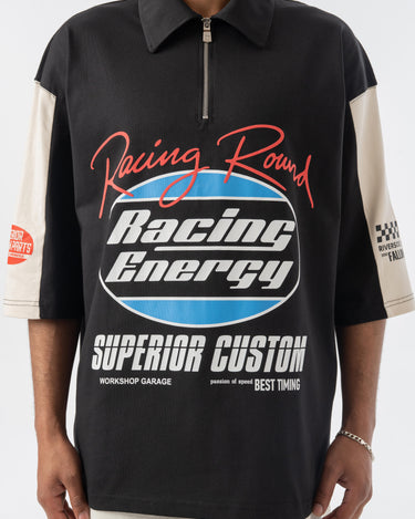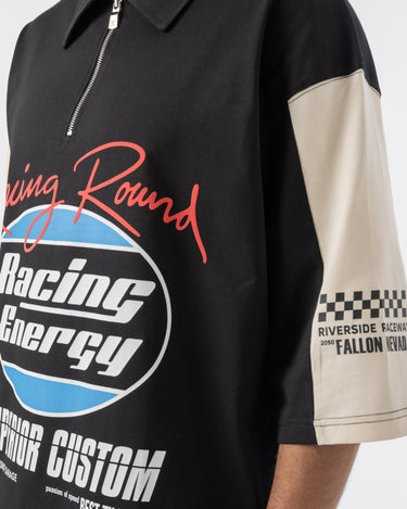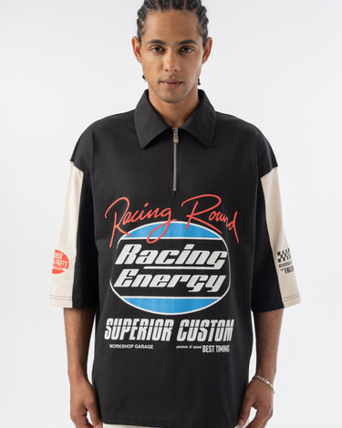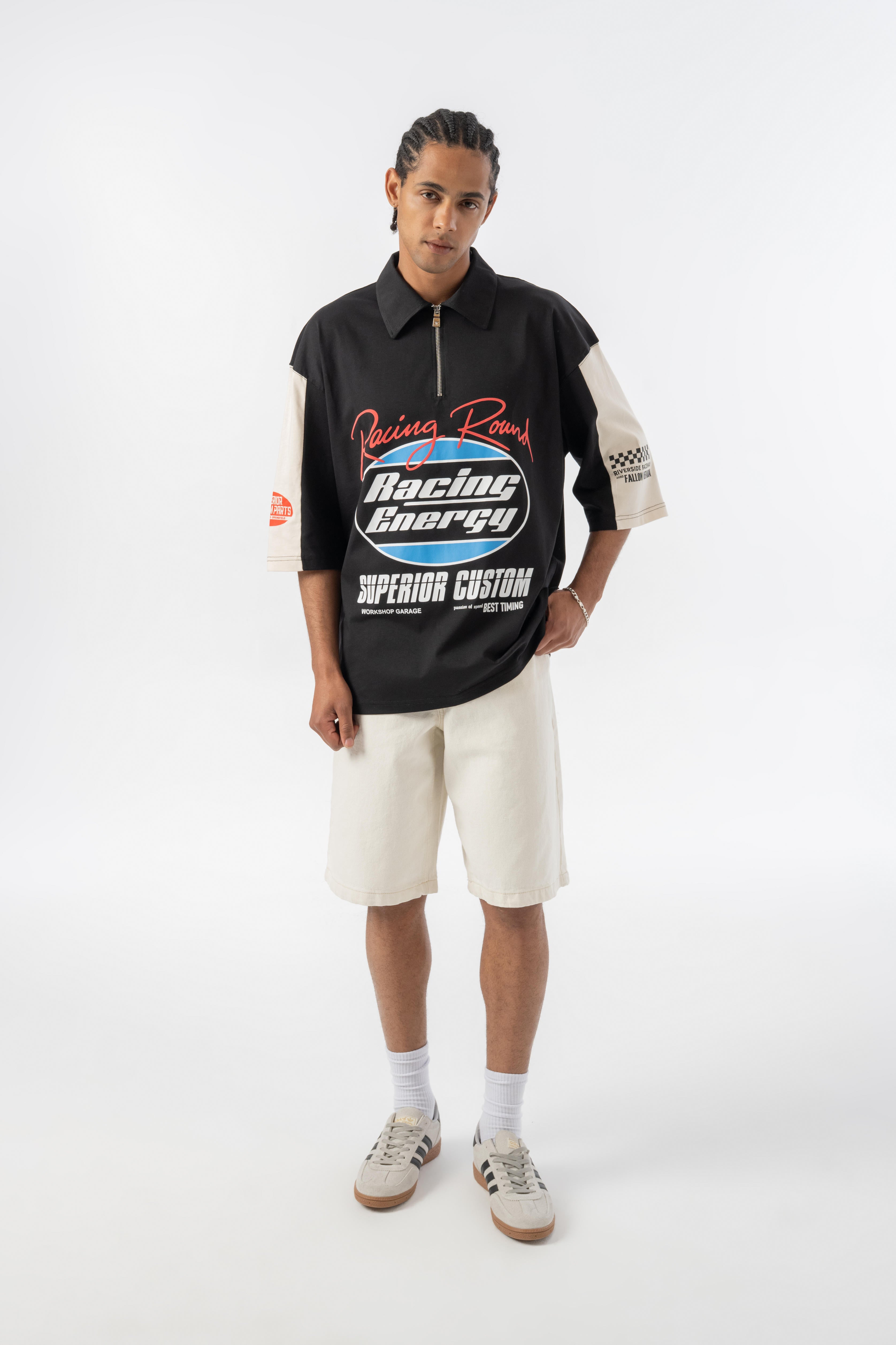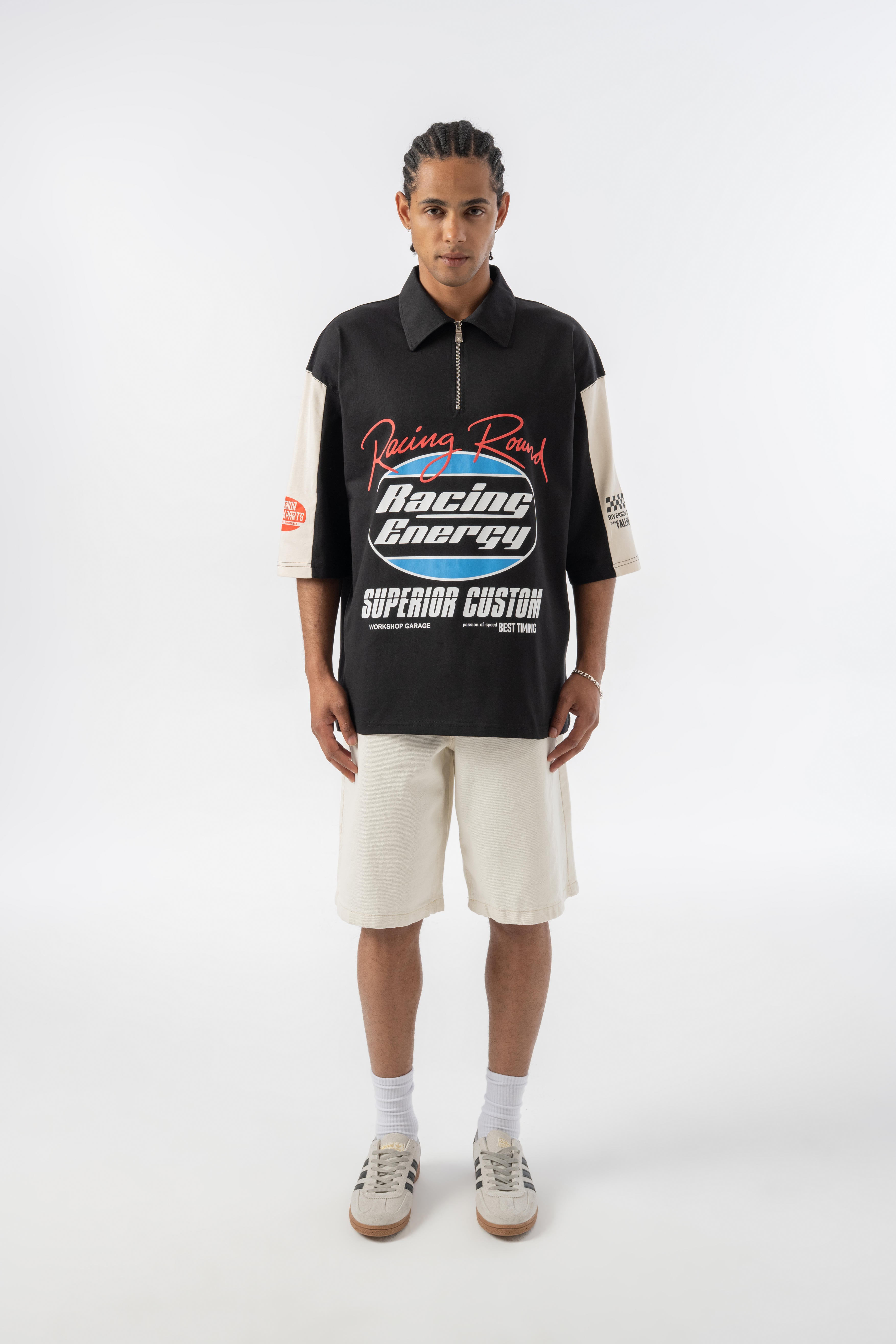 Racing Energy Polo Yaka Oversize T-shirt- Siyah
