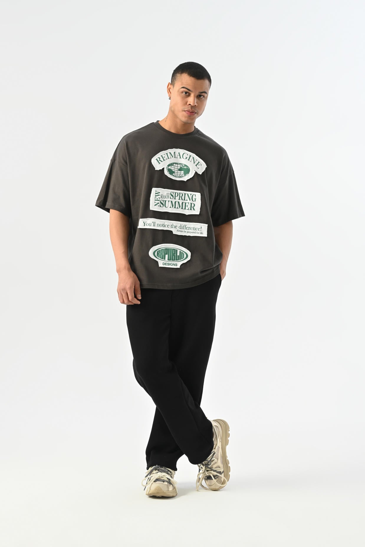 Reimagine Patch Detaylı Oversize T-shirt - Antrasit