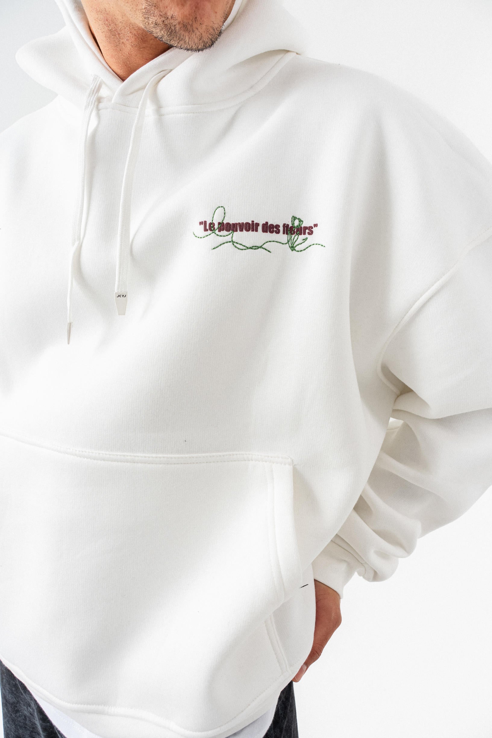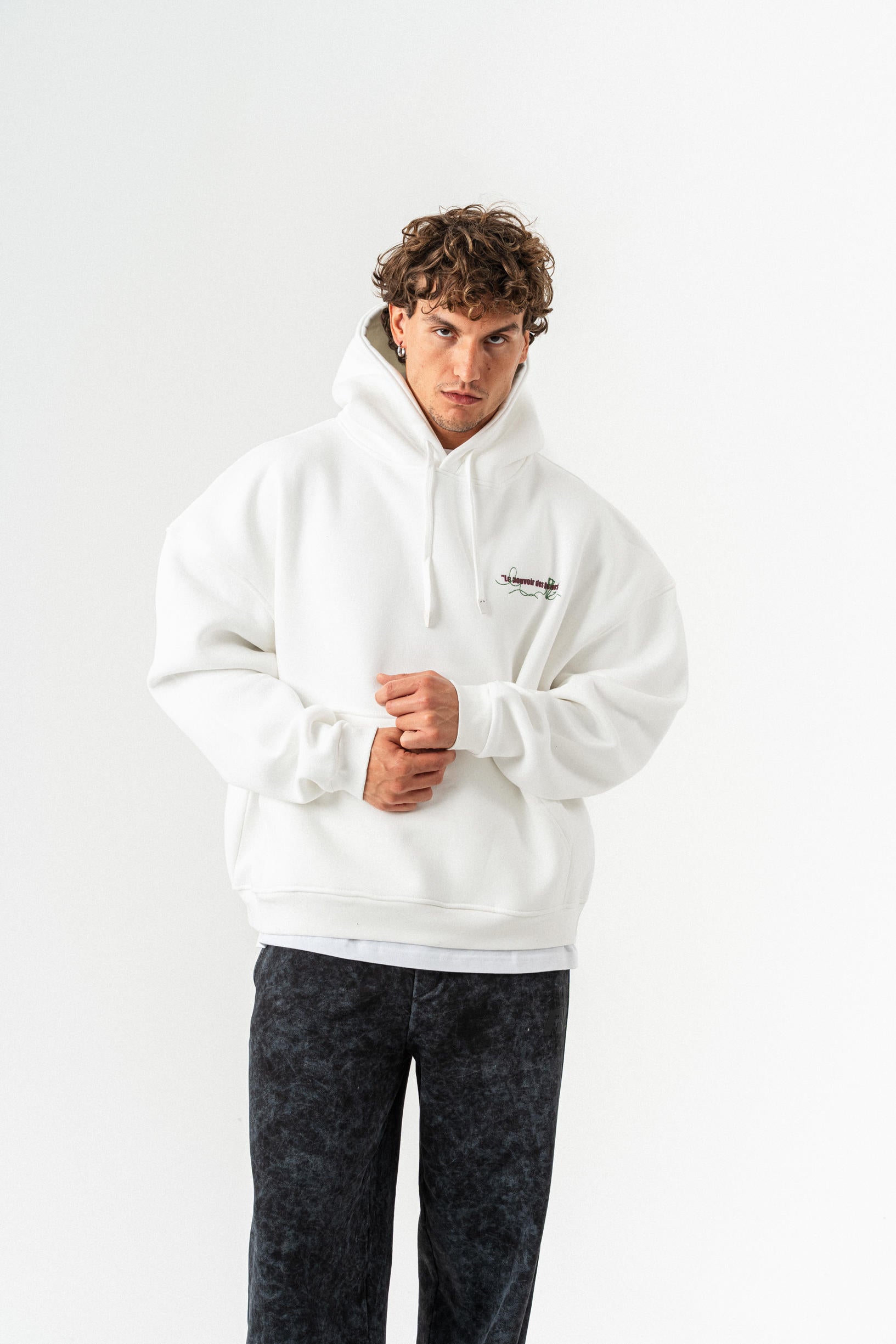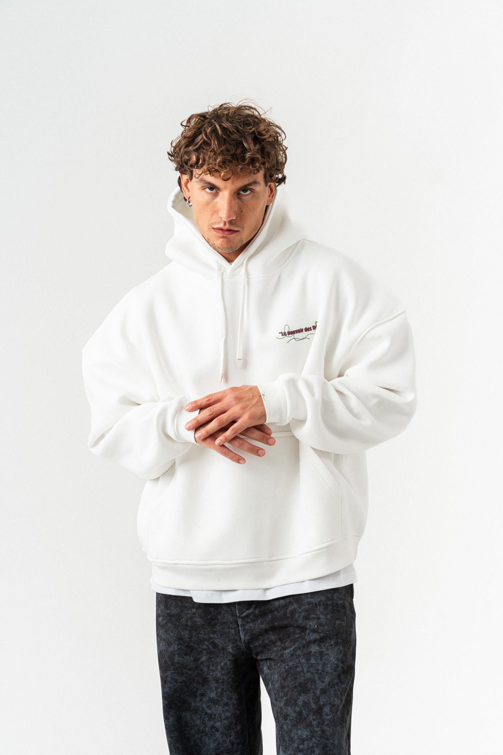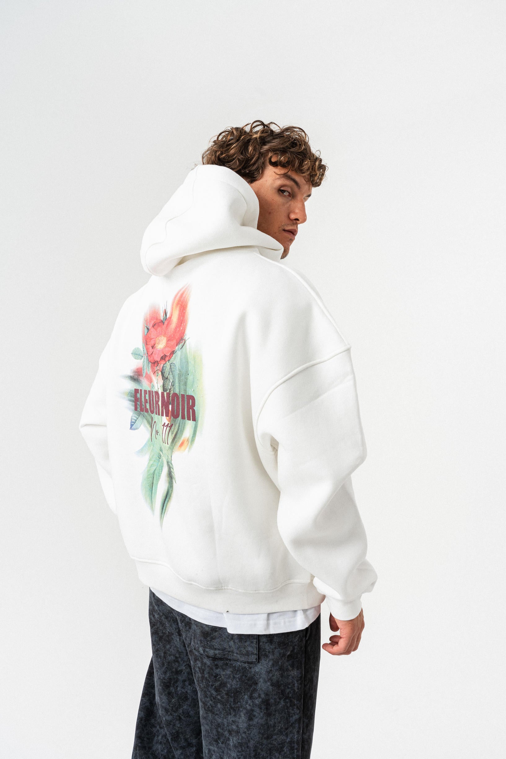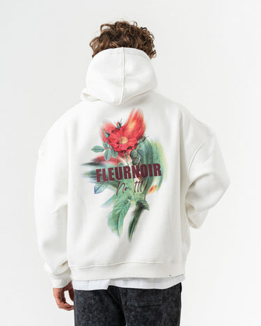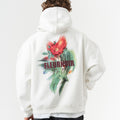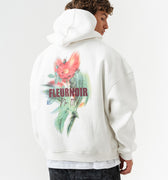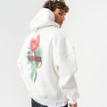 Çiçek Desenli Kapüşonlu Oversize Sweatshirt - Ekru