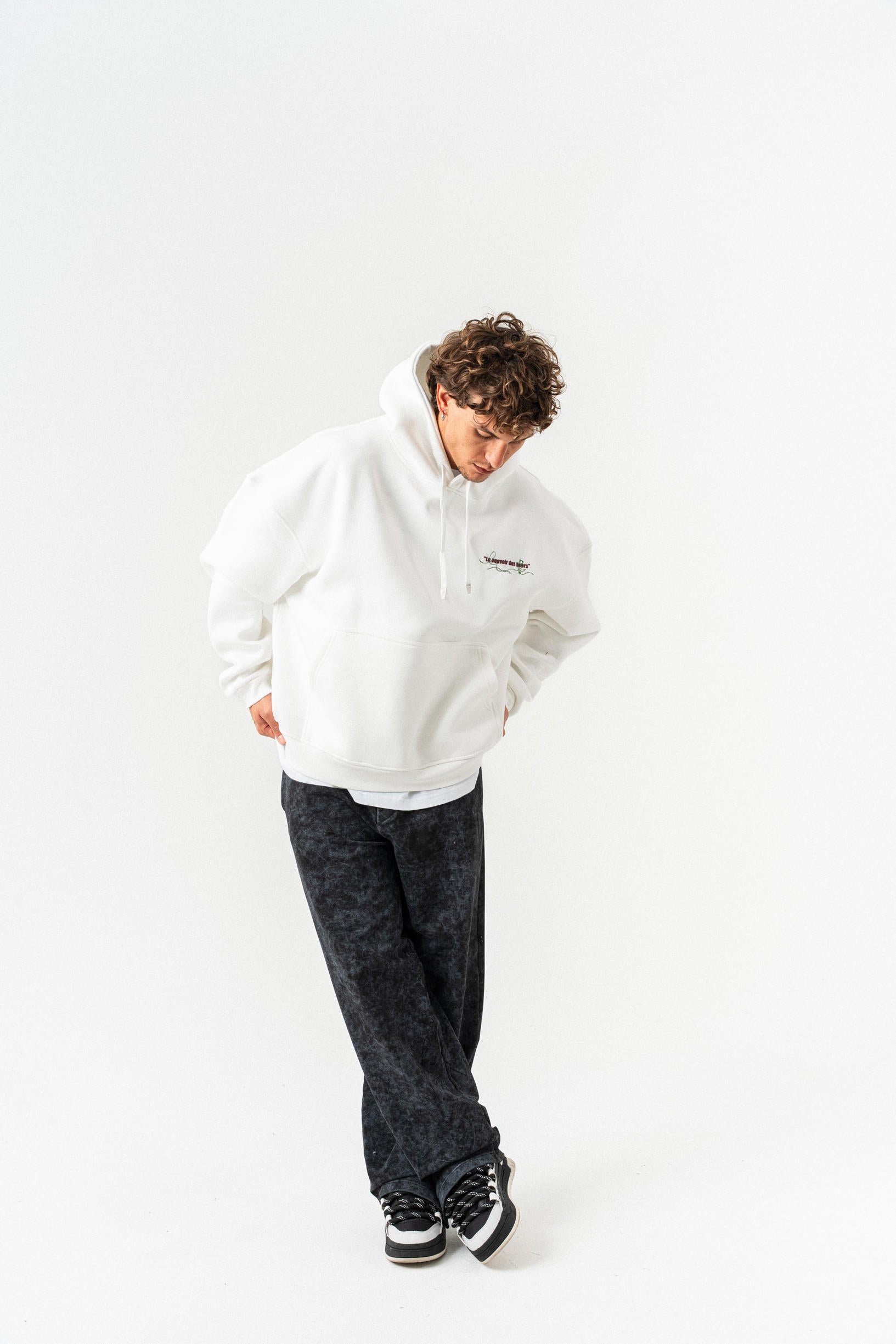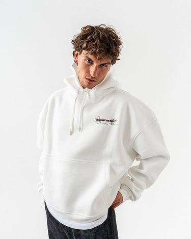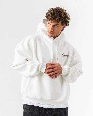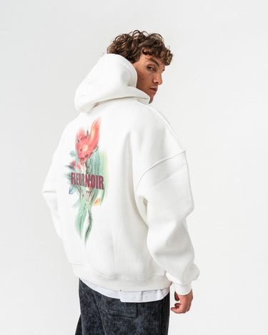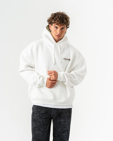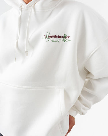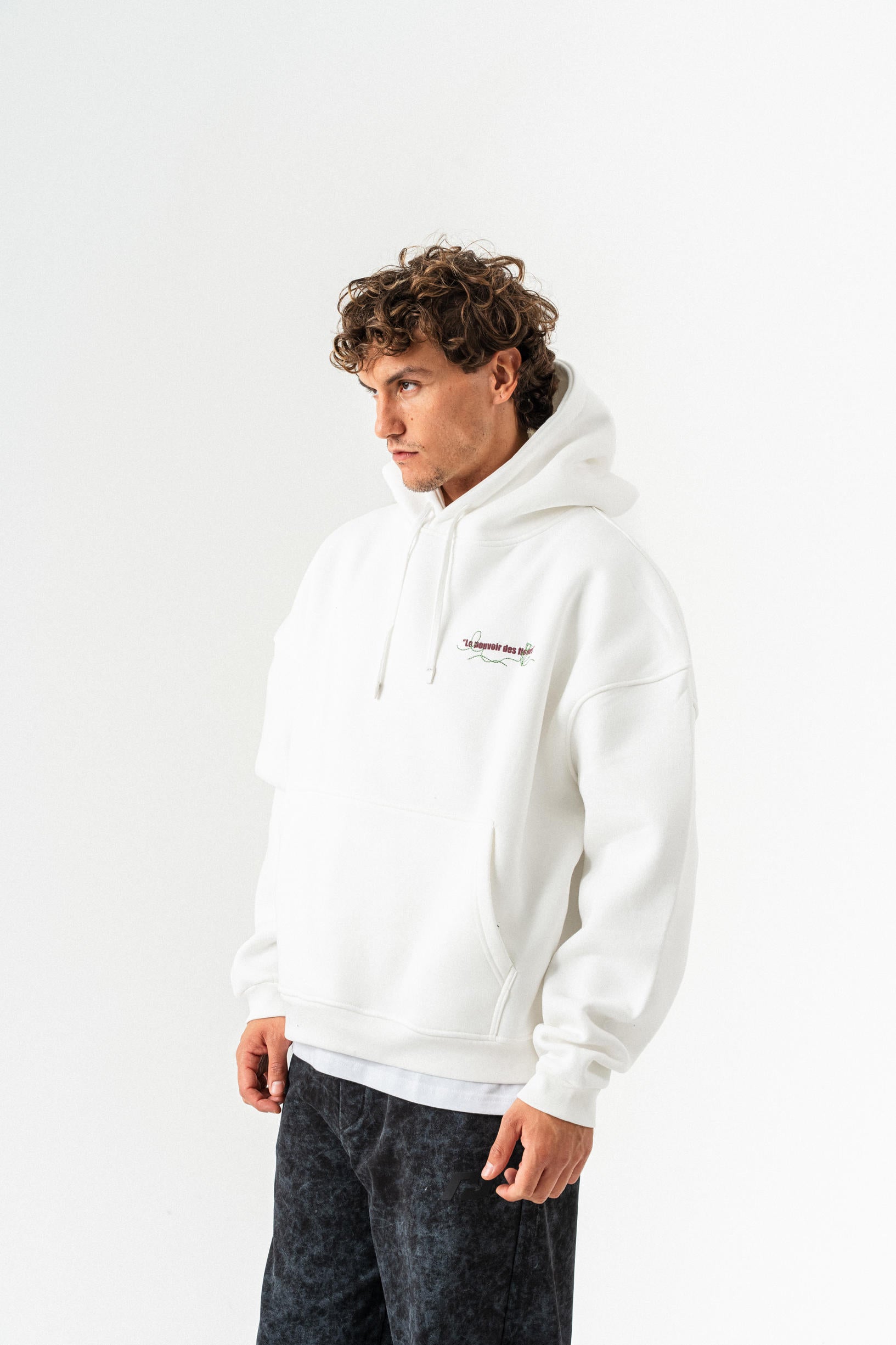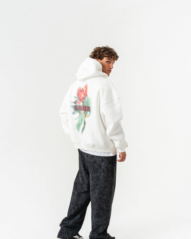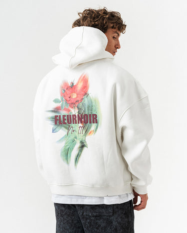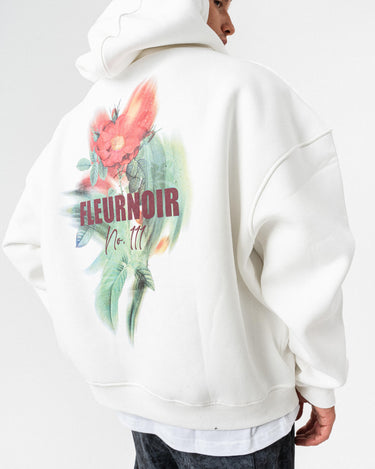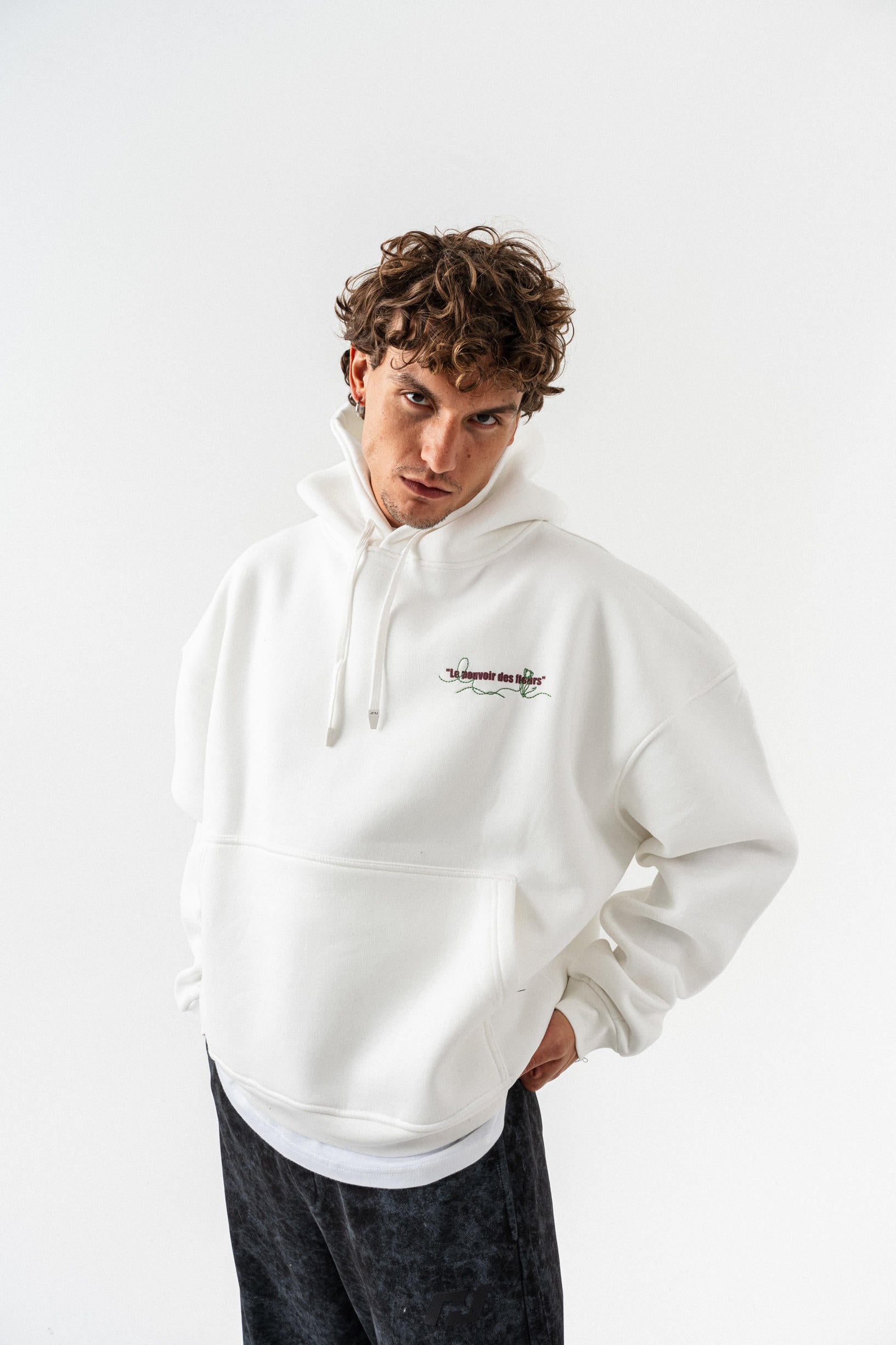 Çiçek Desenli Kapüşonlu Oversize Sweatshirt - Ekru