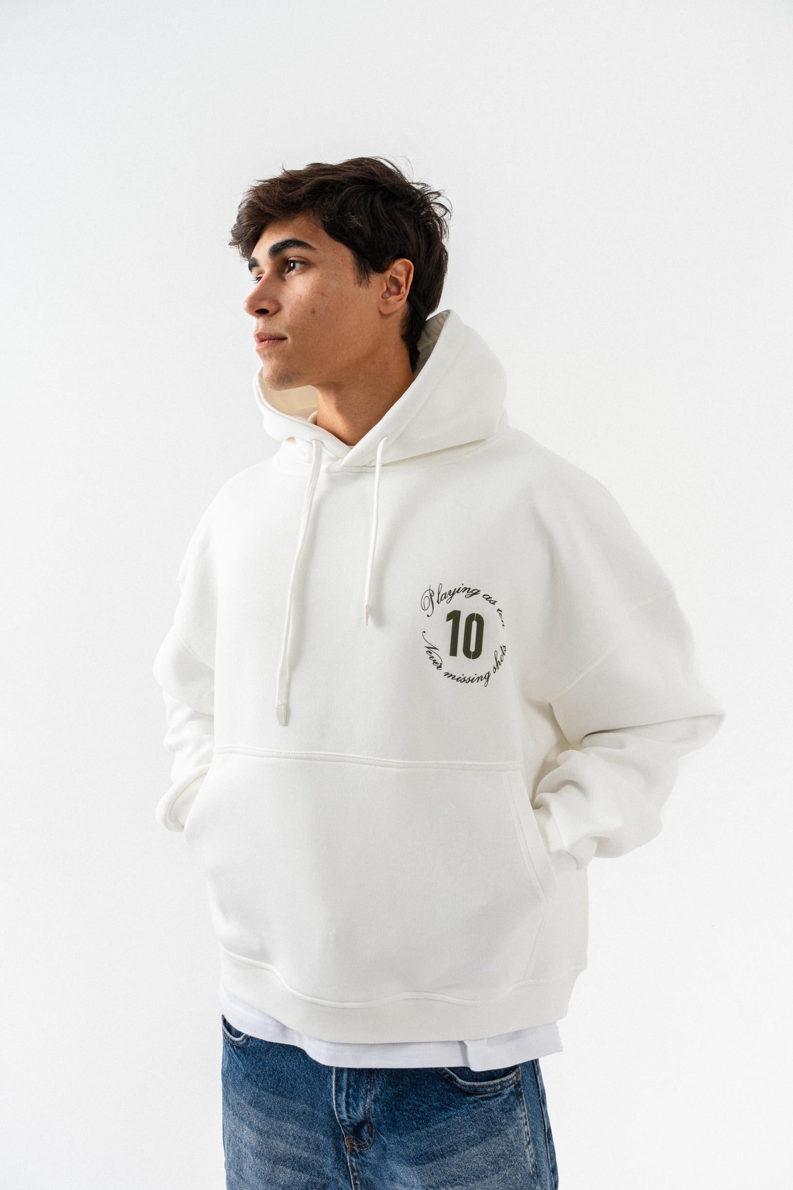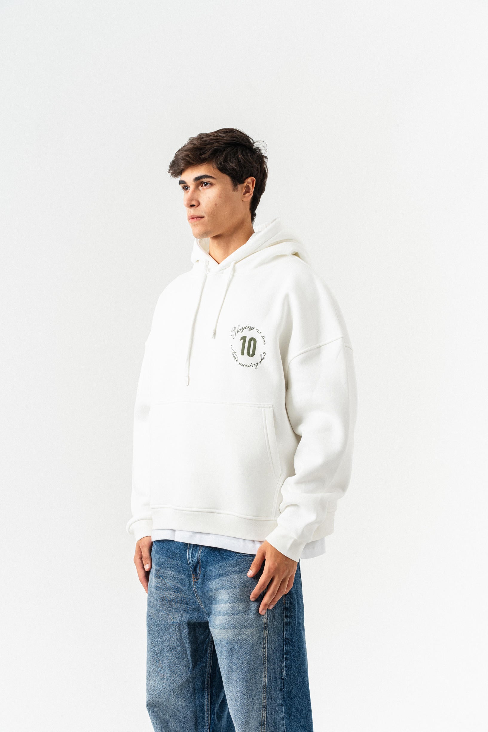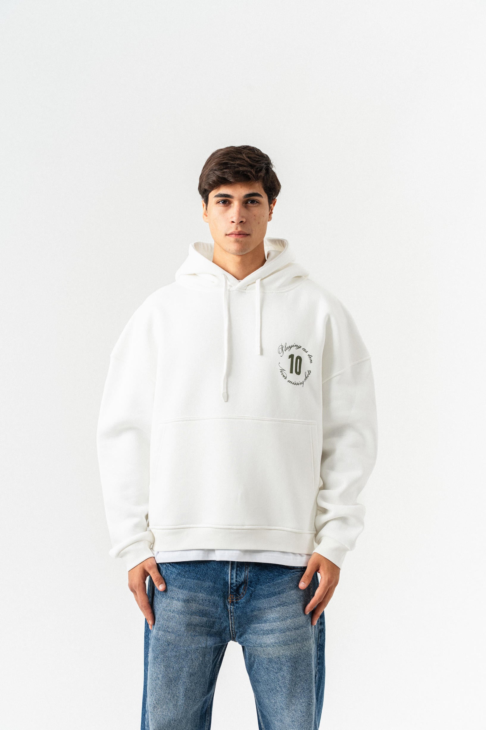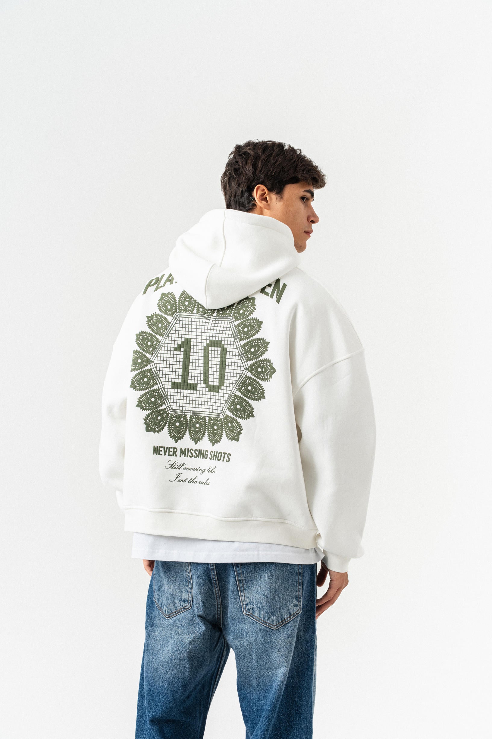 Playing 10 Kapüşonlu Oversize Sweatshirt - Ekru