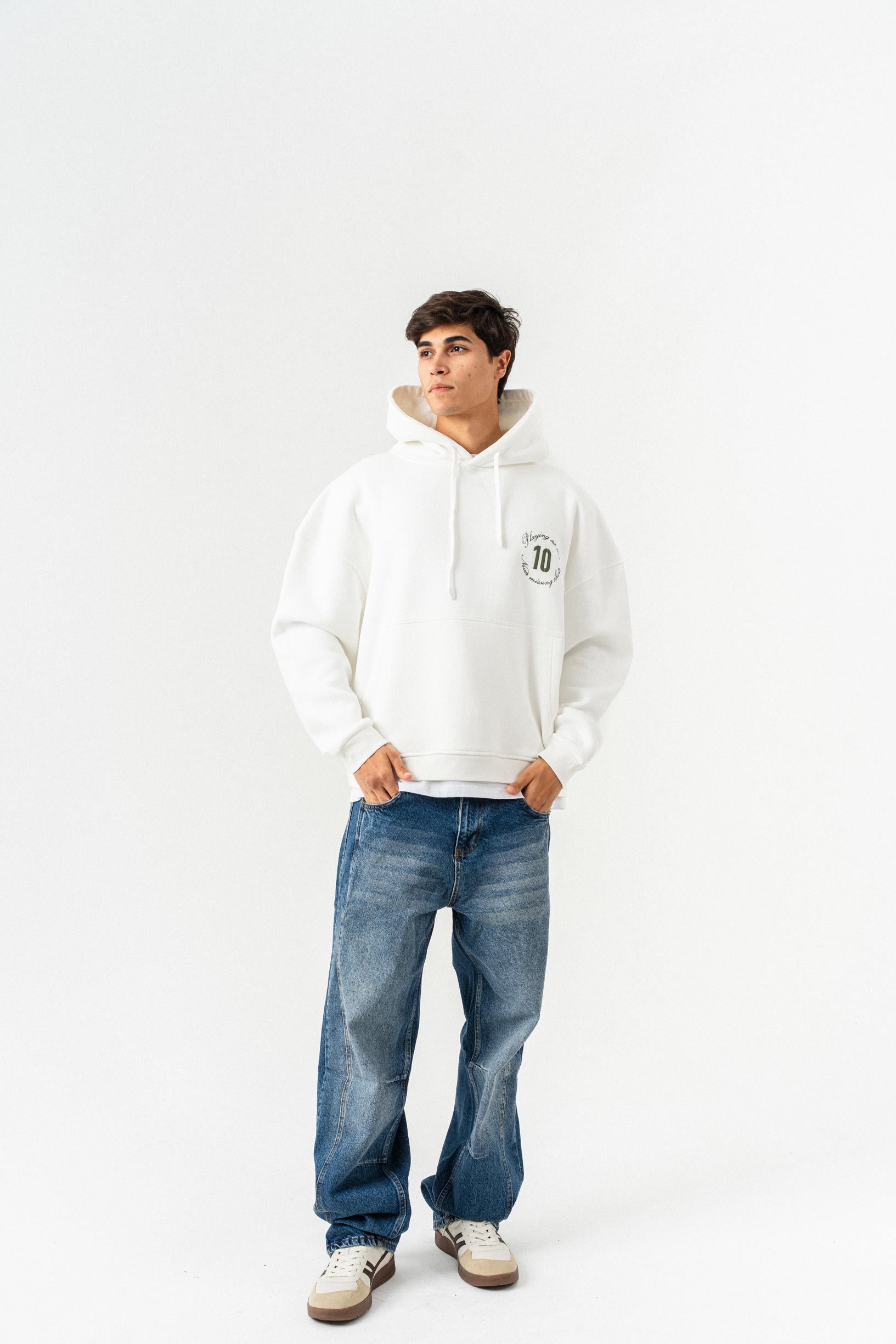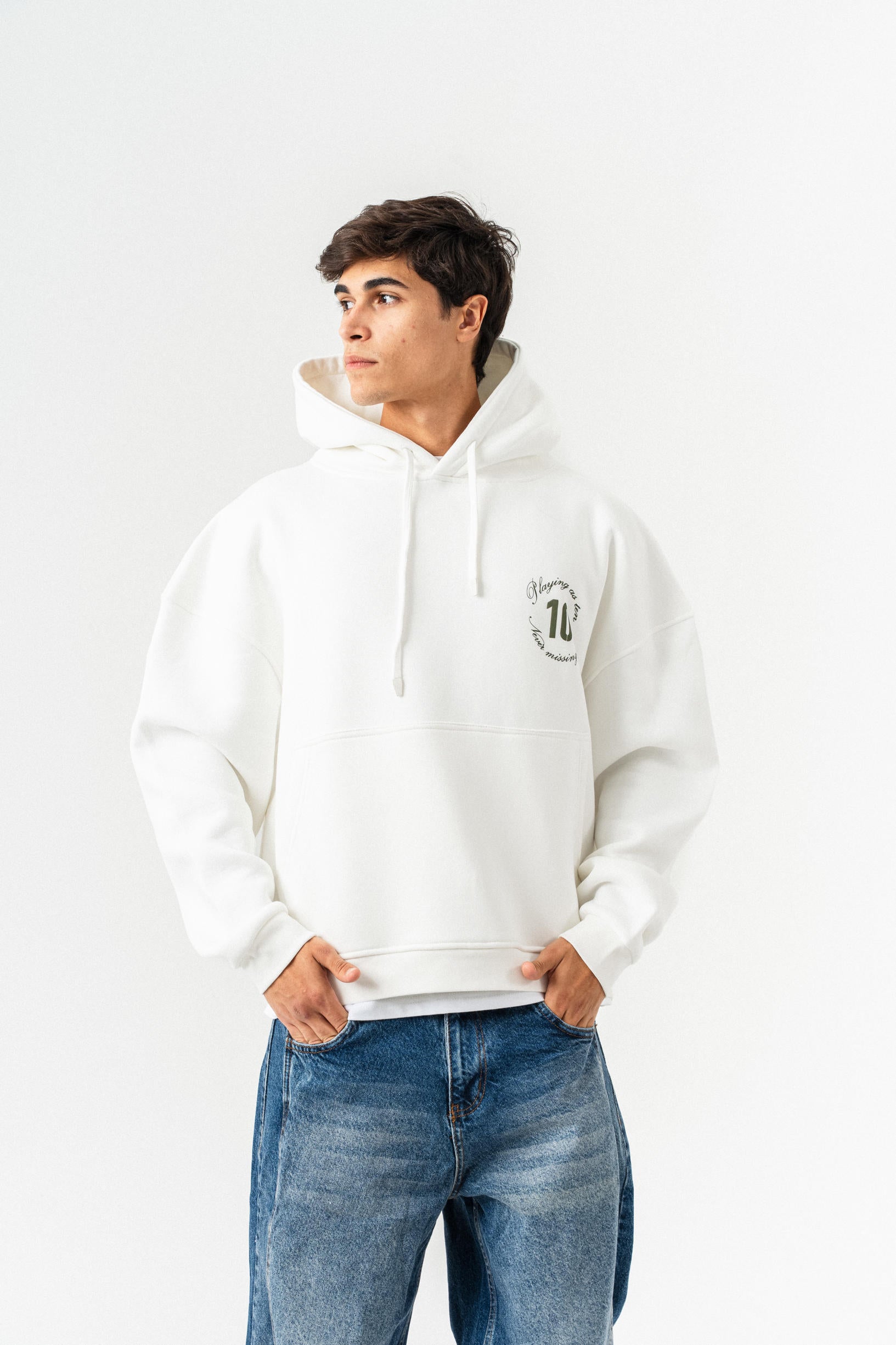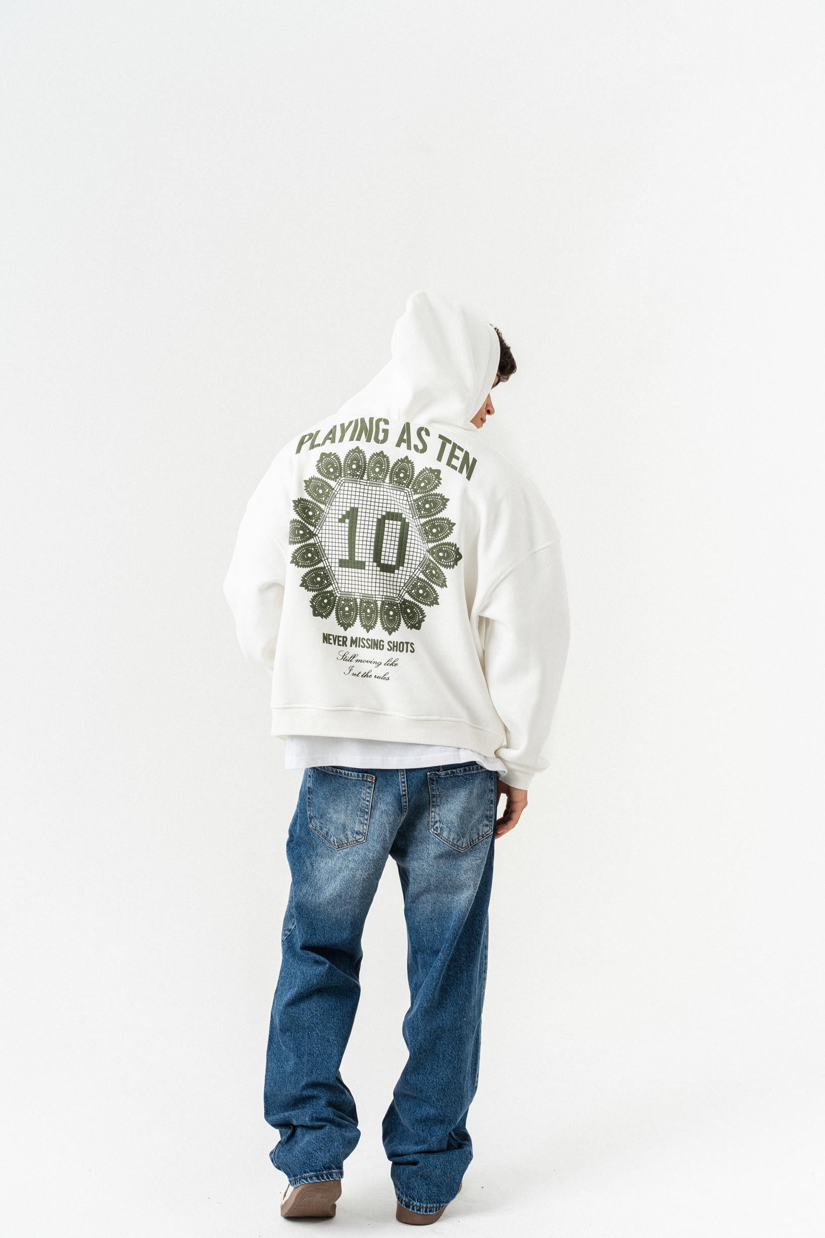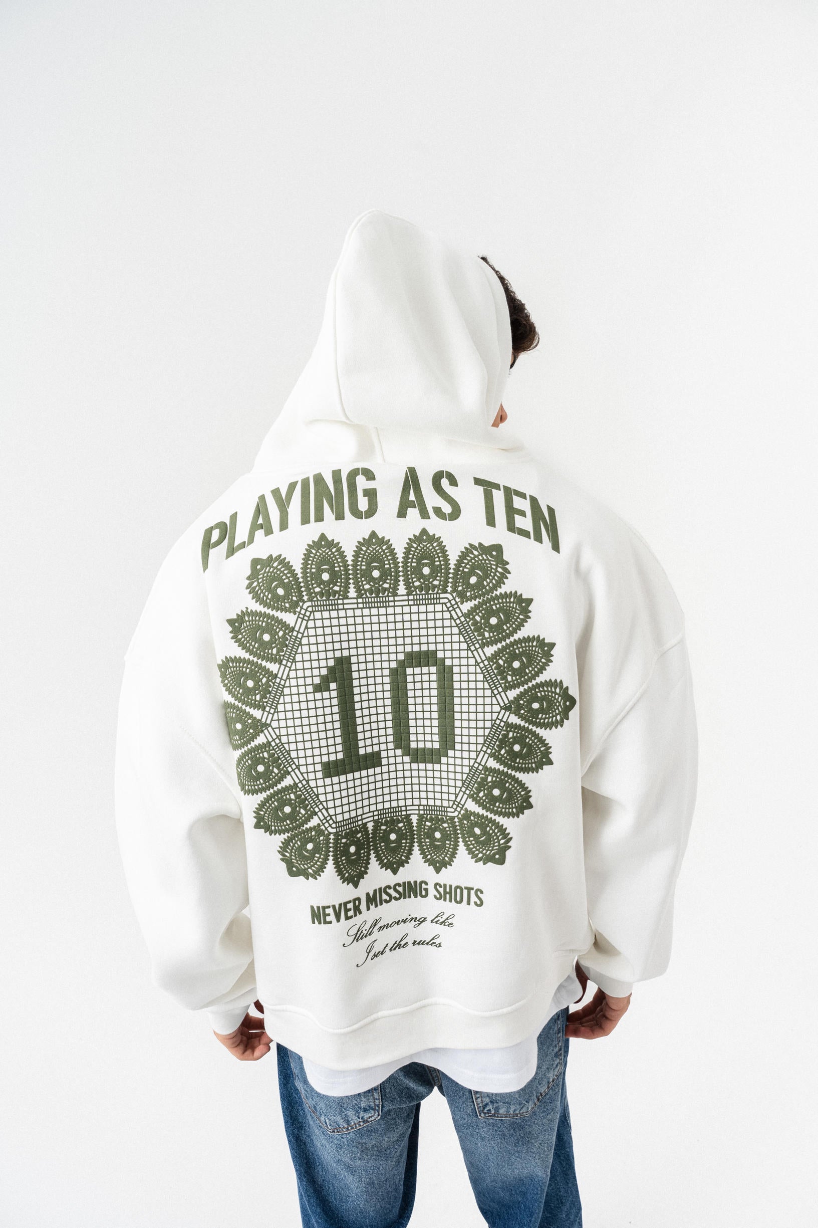Playing 10 Kapüşonlu Oversize Sweatshirt - Ekru