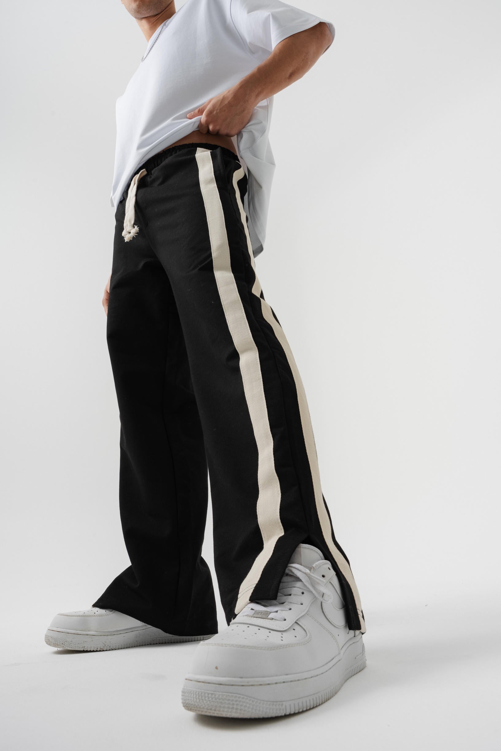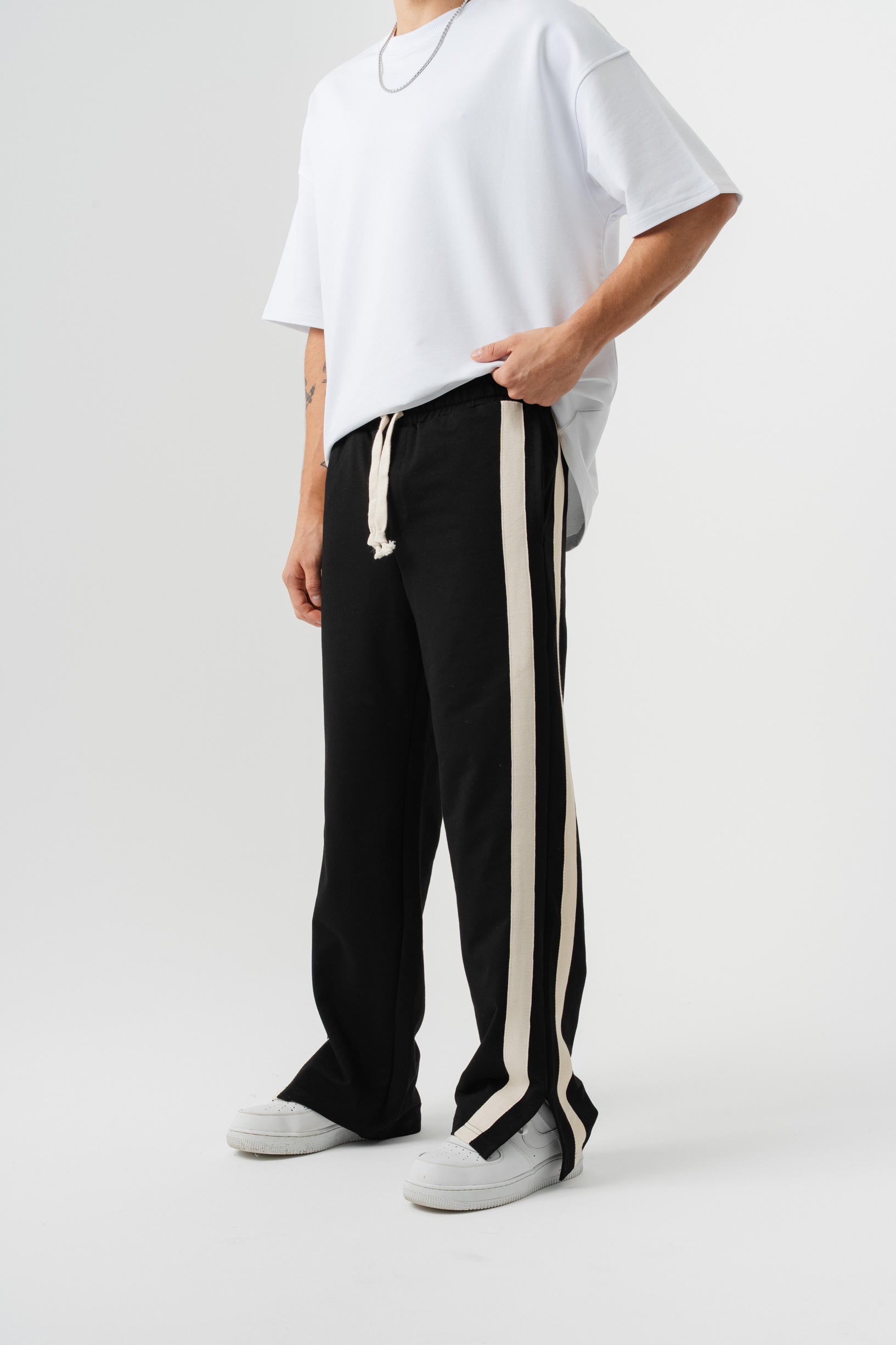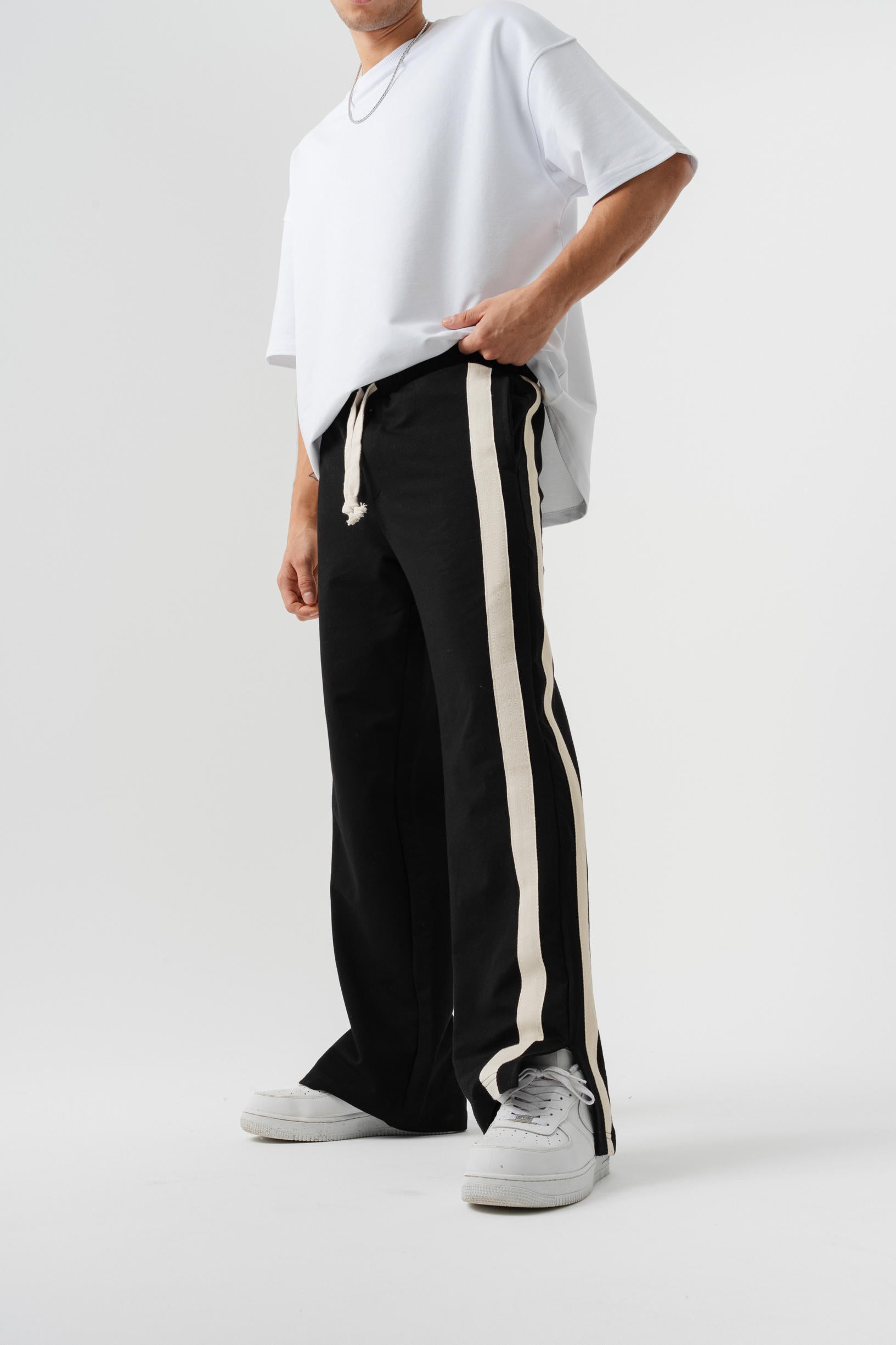 Çift Şetirli Paça Yırtmaçlı Baggy Eşofman Altı - Siyah