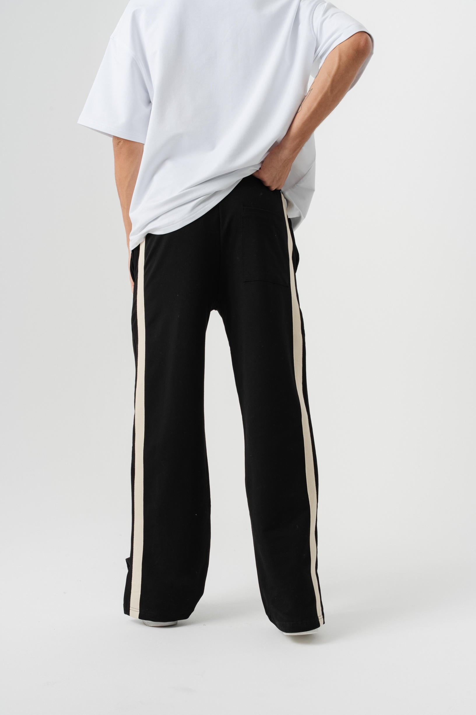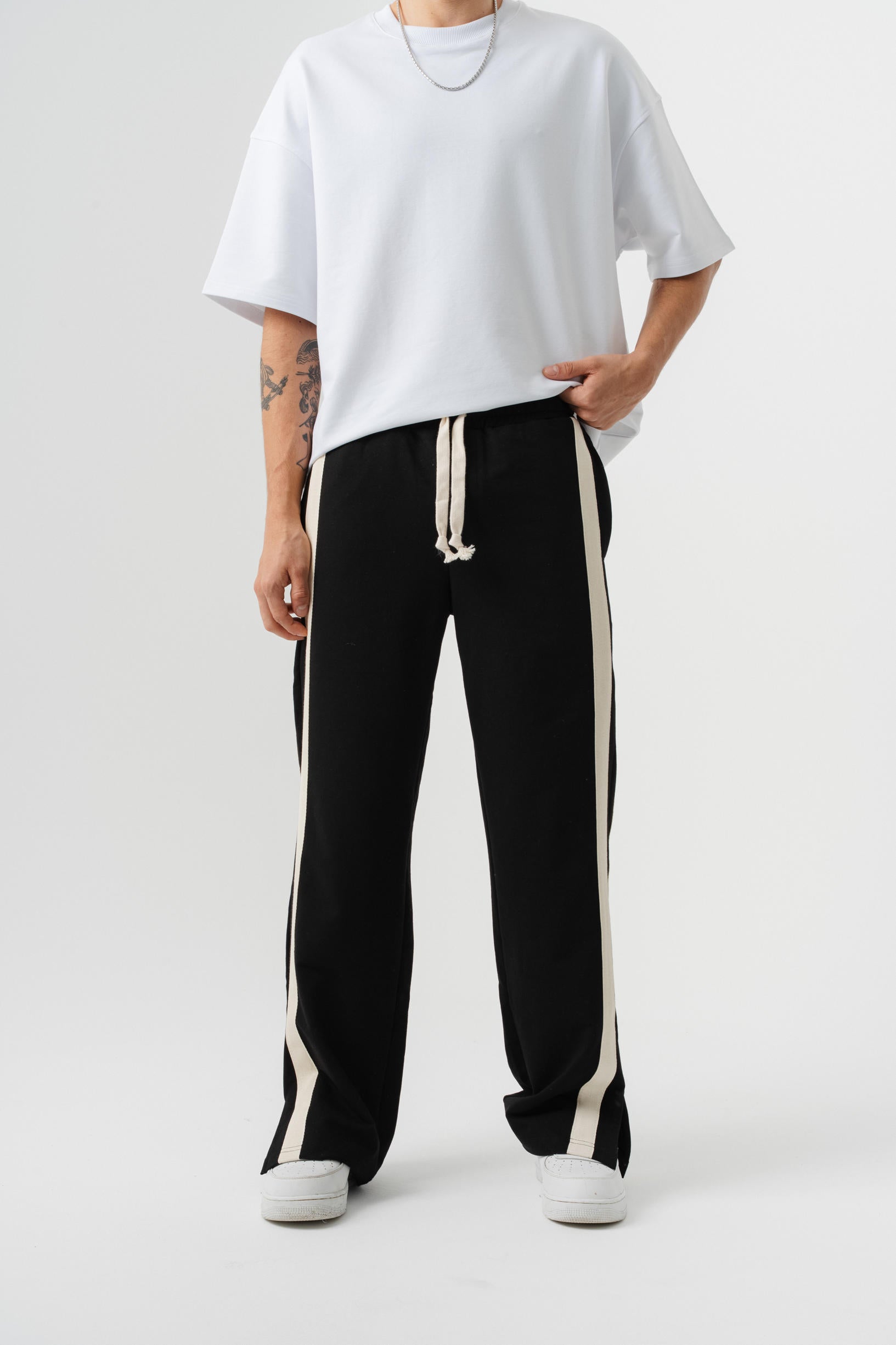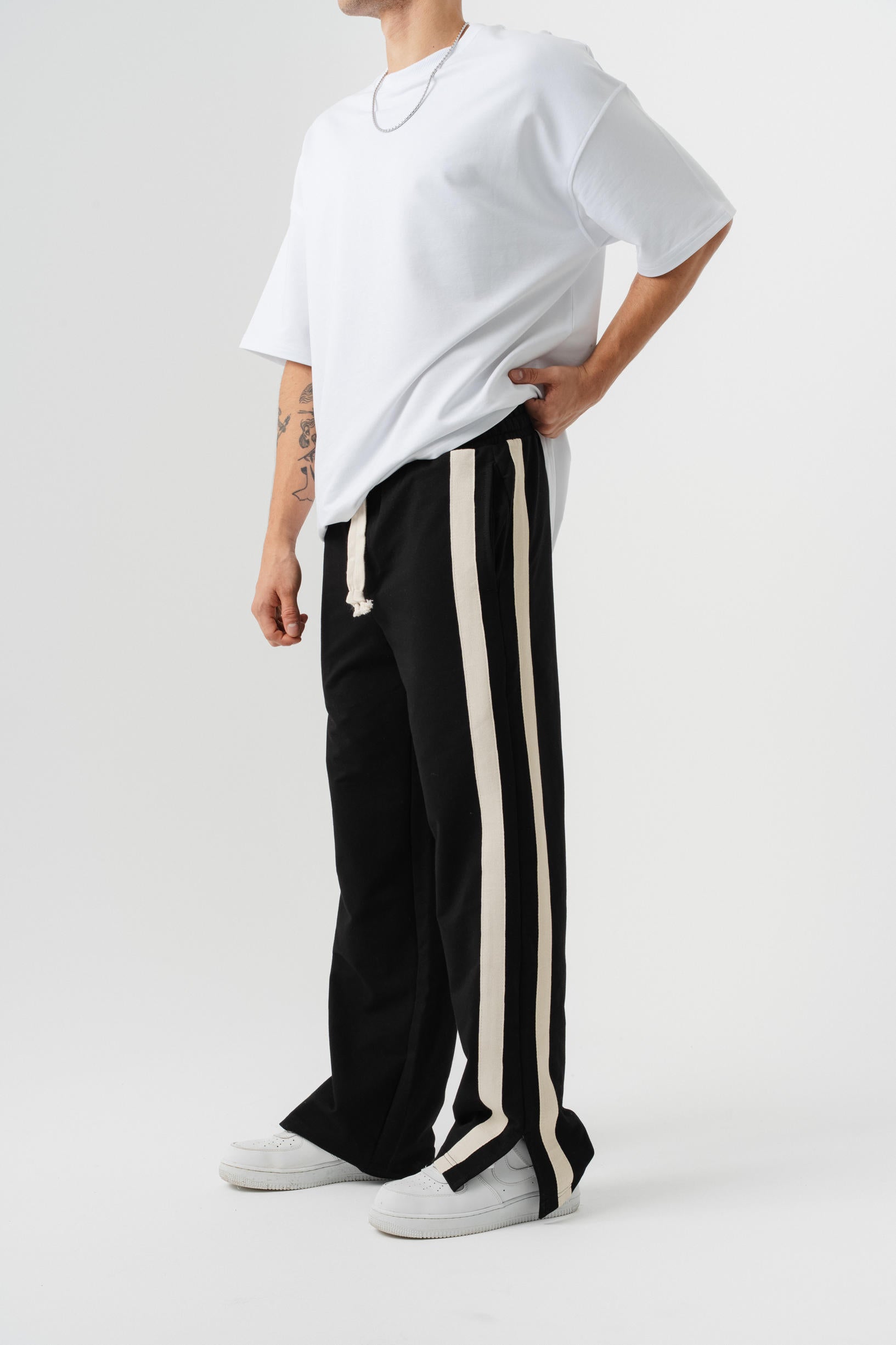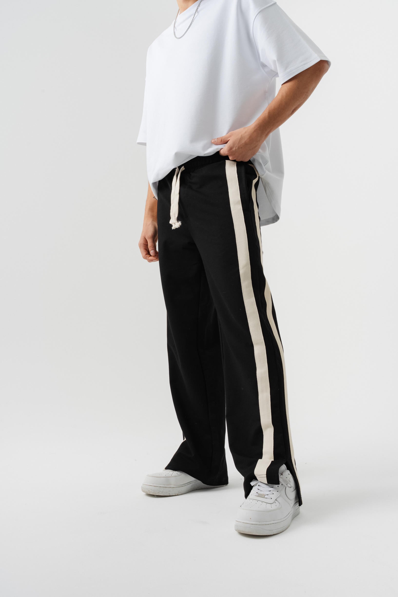 Çift Şetirli Paça Yırtmaçlı Baggy Eşofman Altı - Siyah
