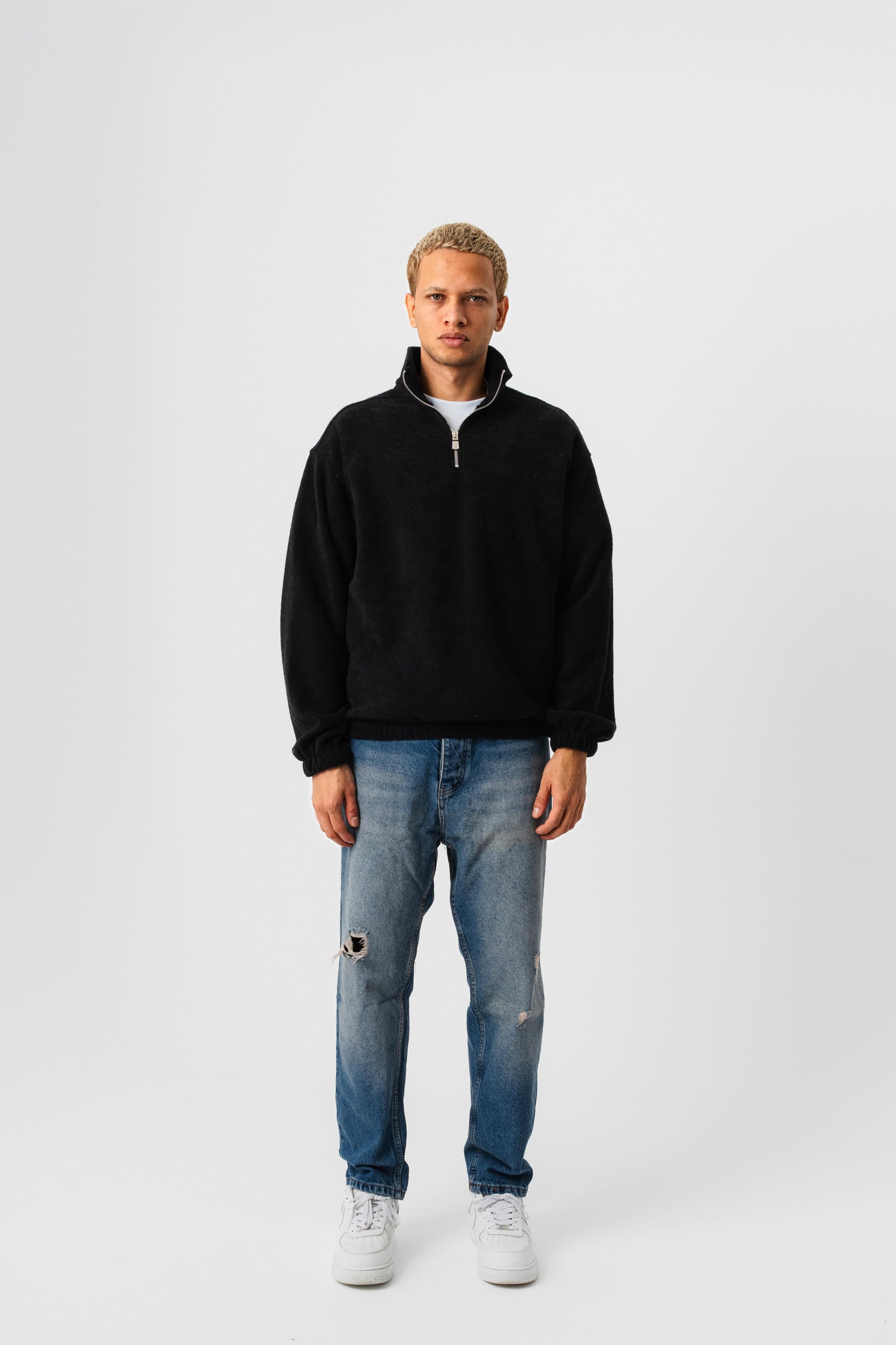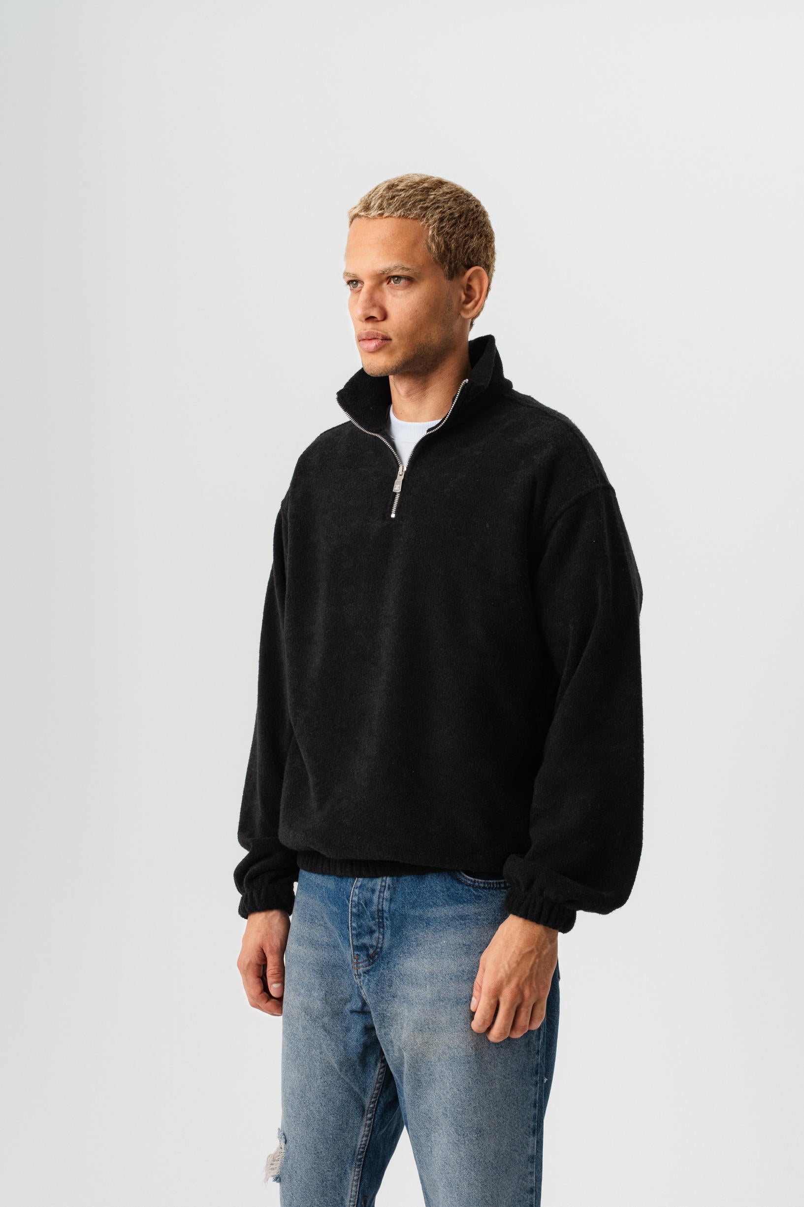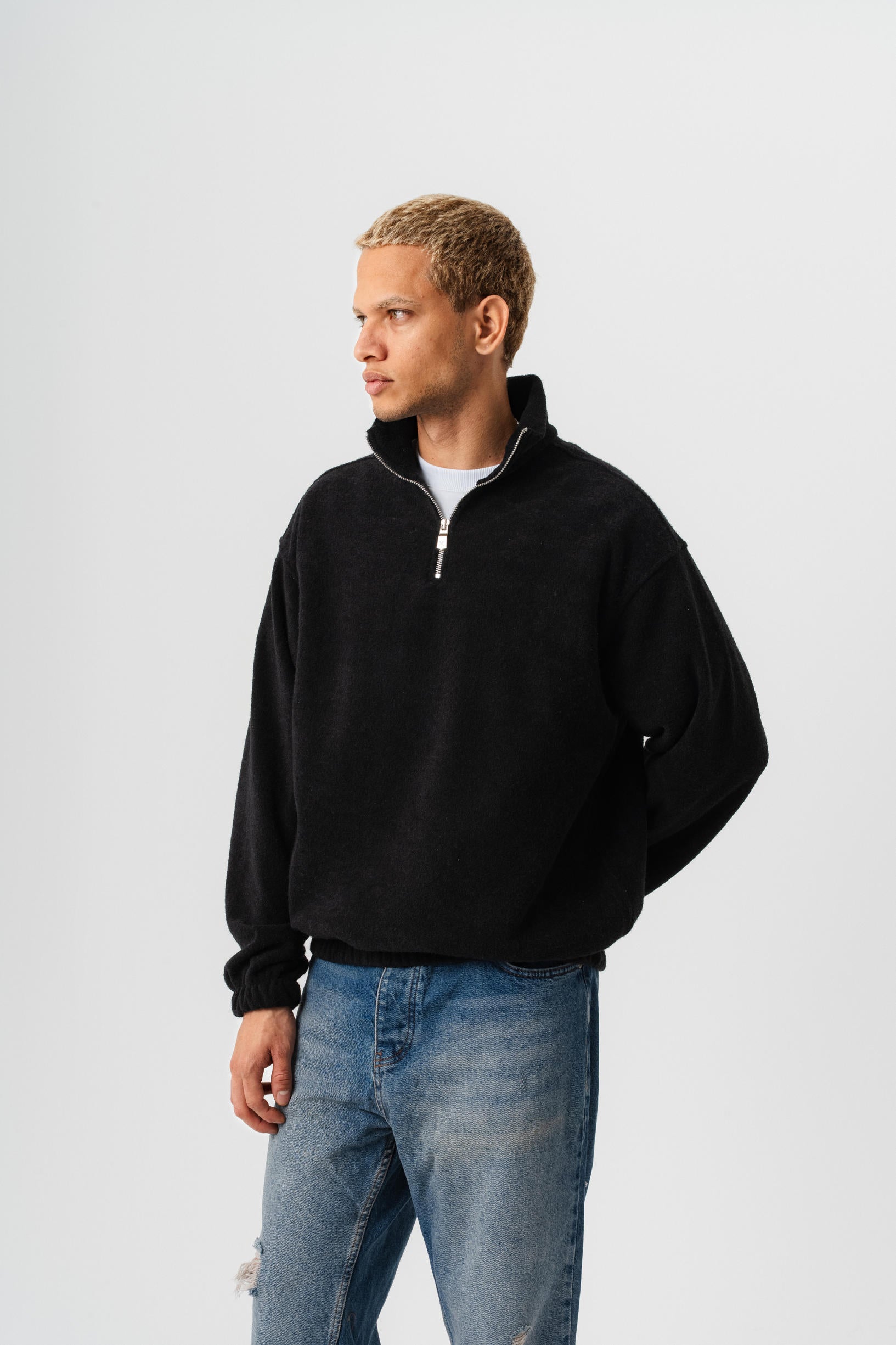 Yarım Fermuarlı Basic Oversize Sweatshirt - Siyah
