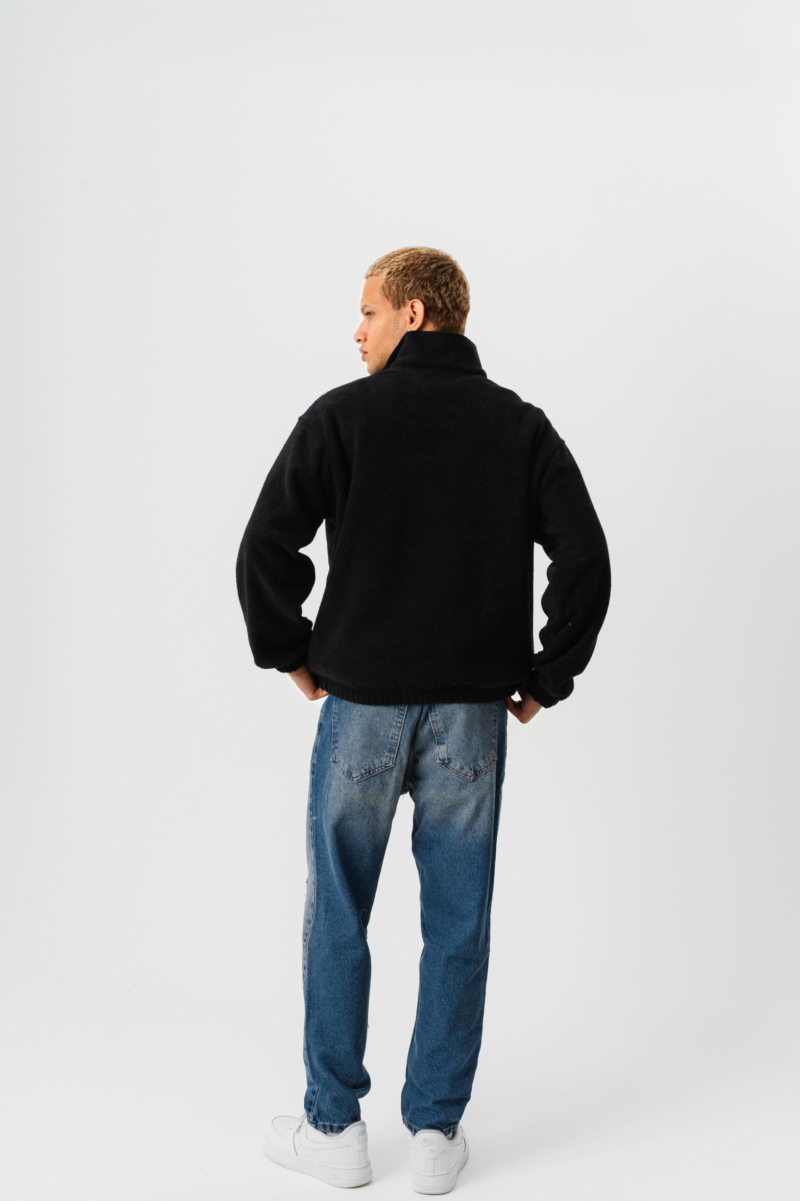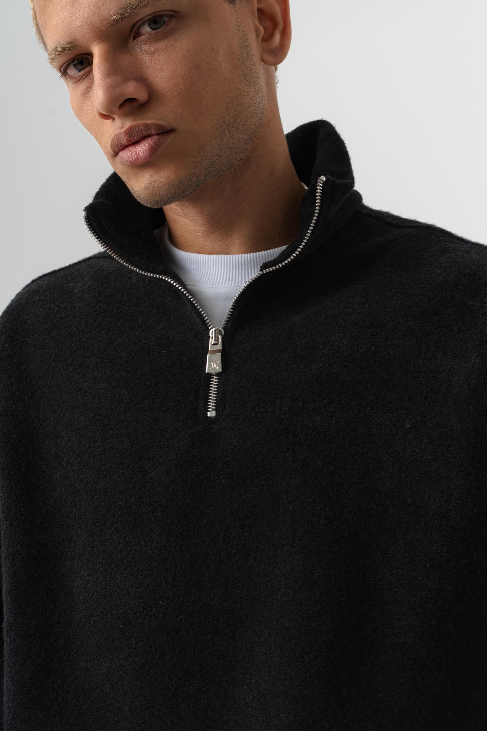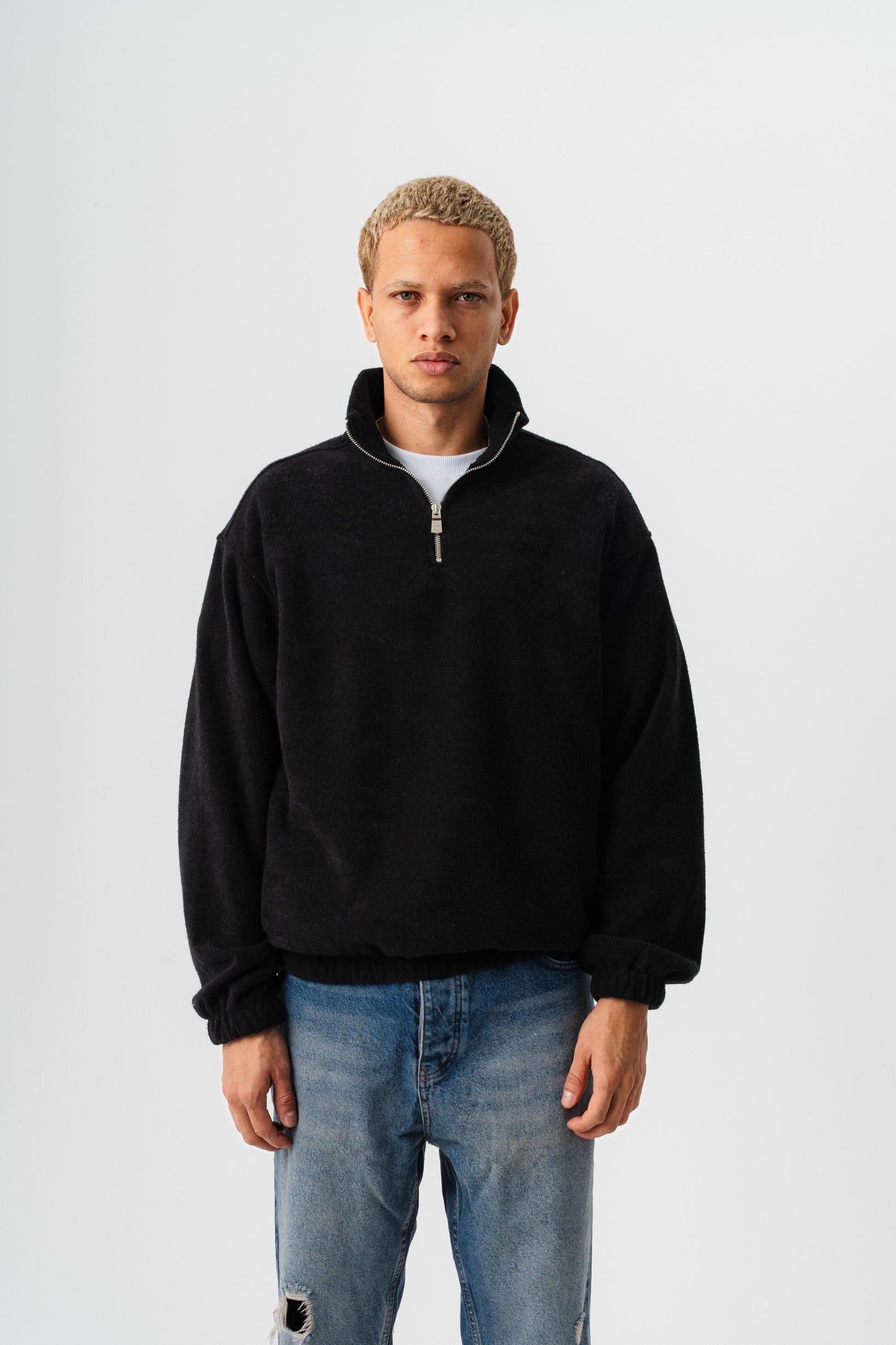 Yarım Fermuarlı Basic Oversize Sweatshirt - Siyah