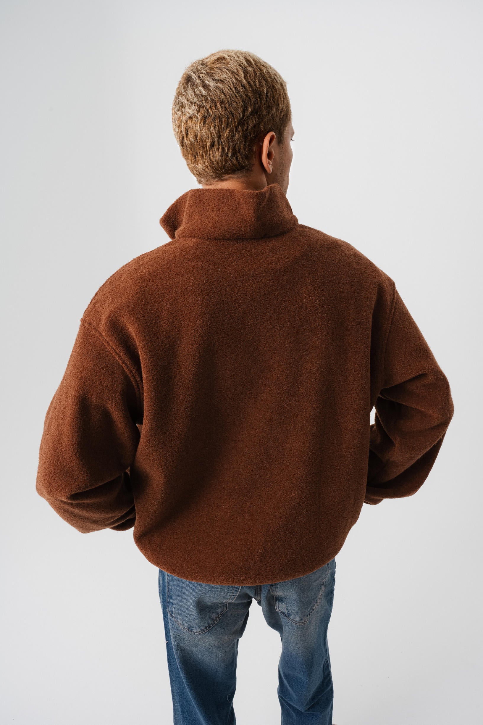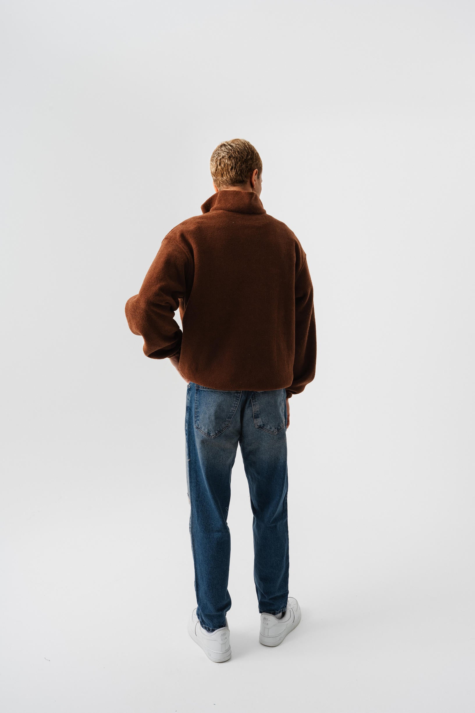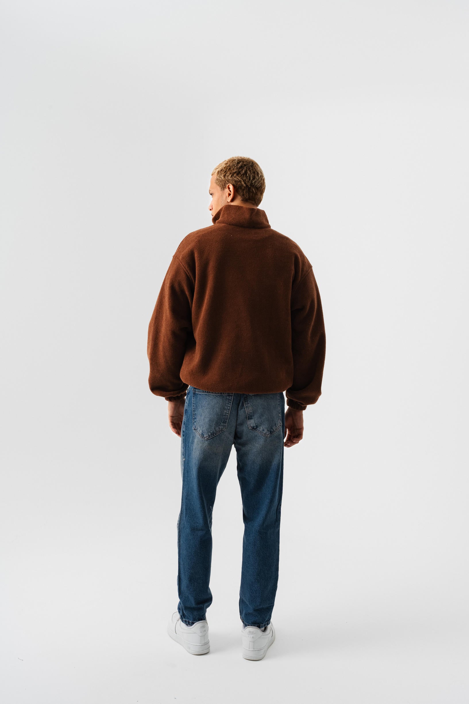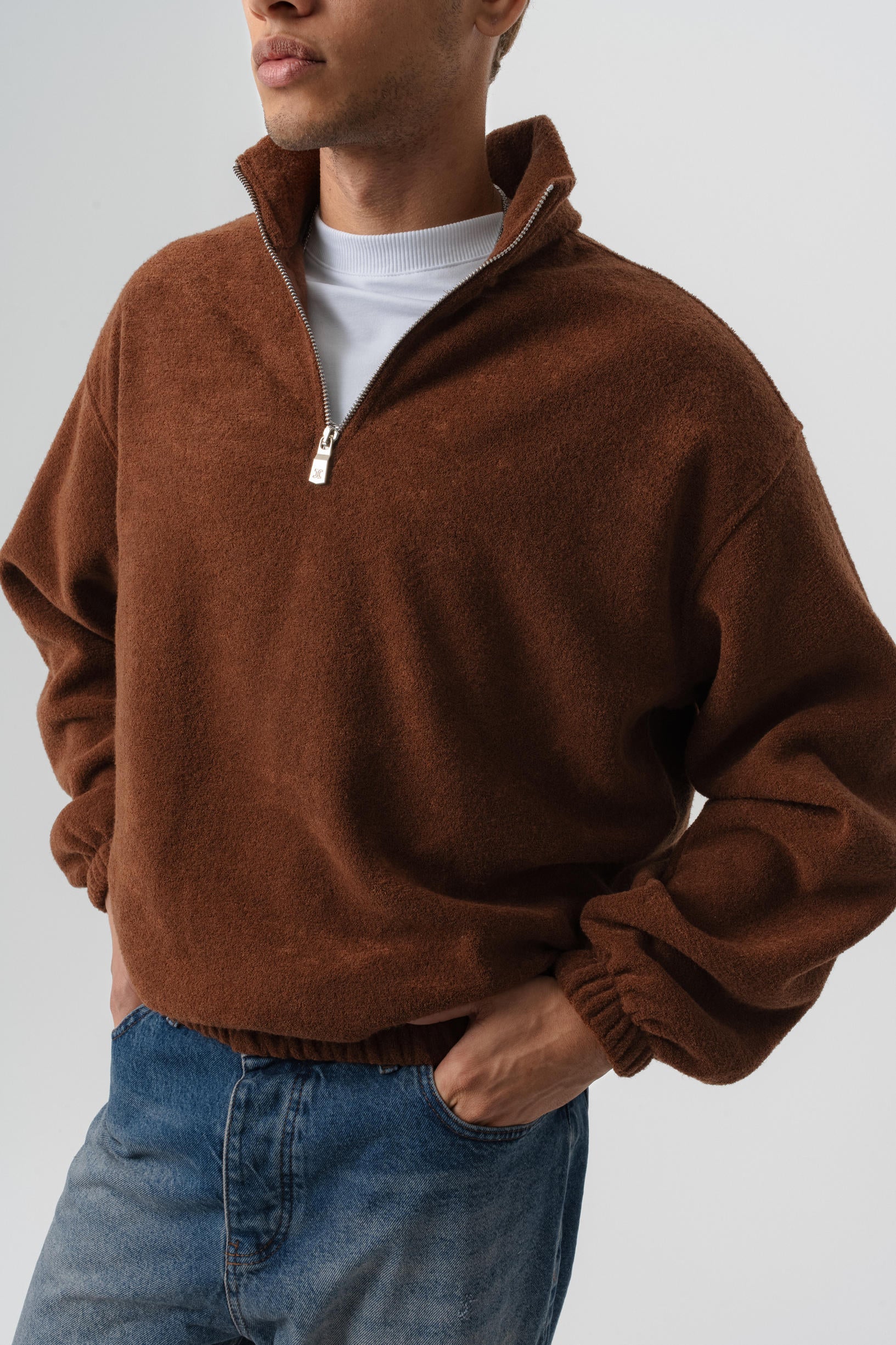 Yarım Fermuarlı Basic Oversize Sweatshirt - Kahverengi