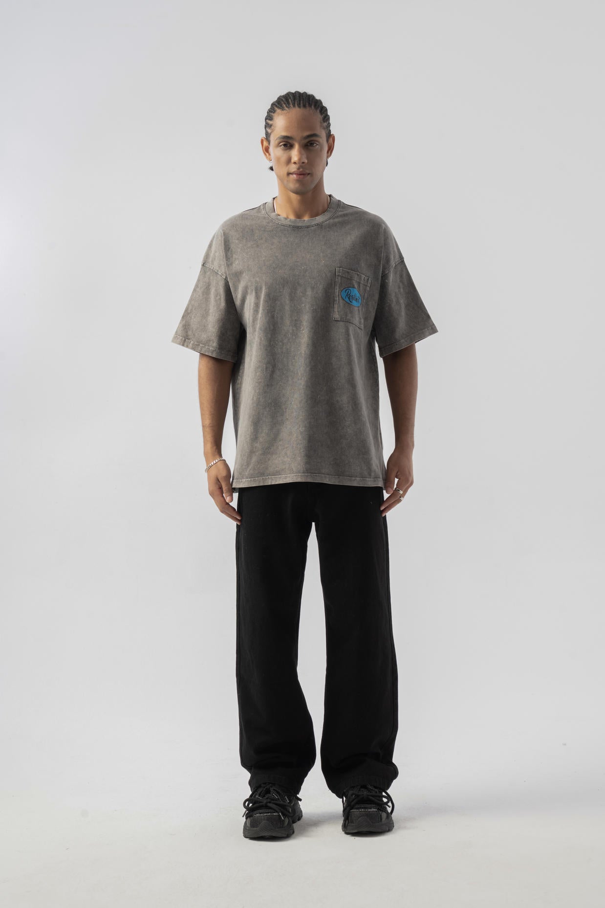 Cep Detaylı Yıkamalı Oversize T-shirt - Antrasit