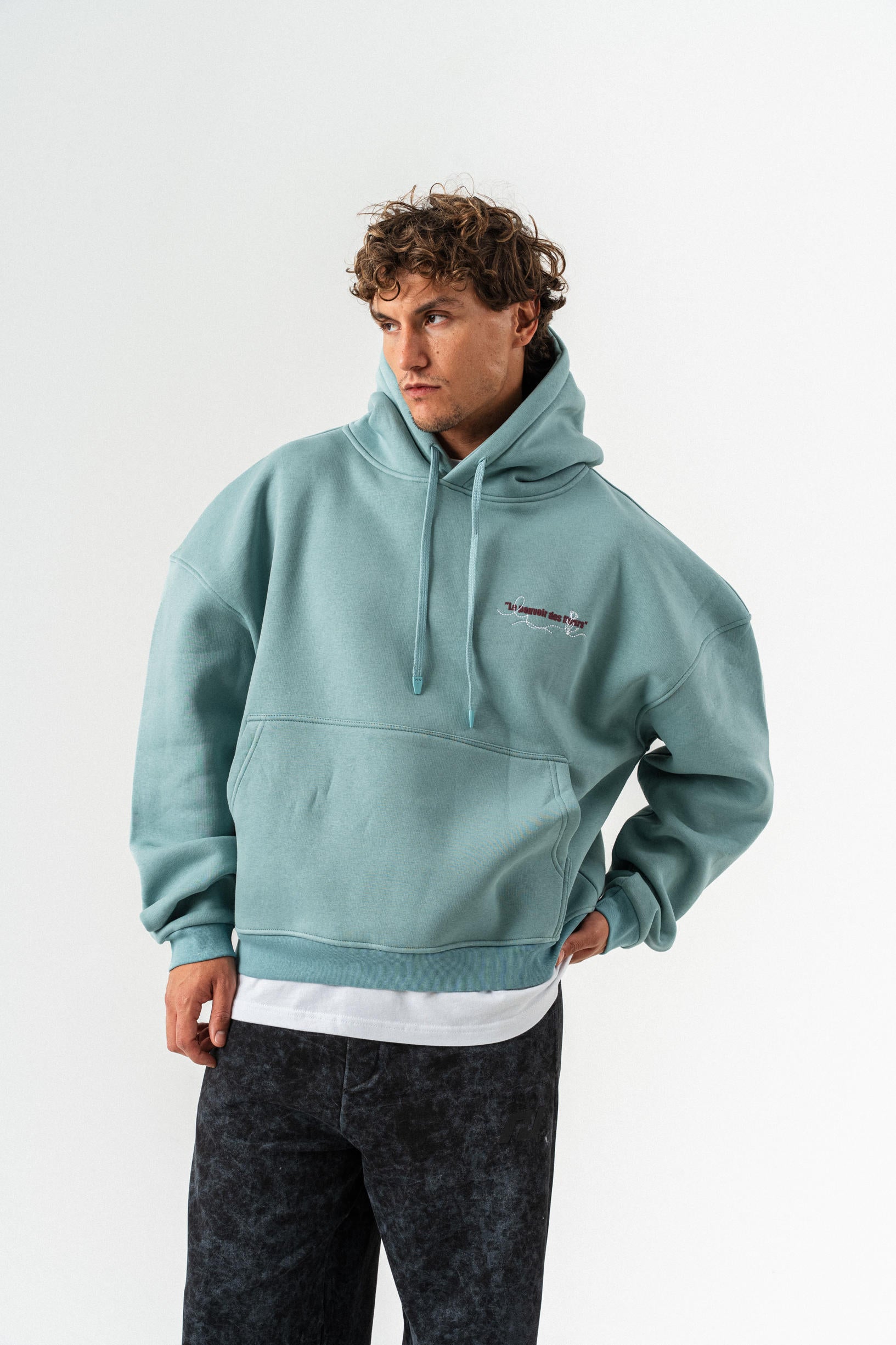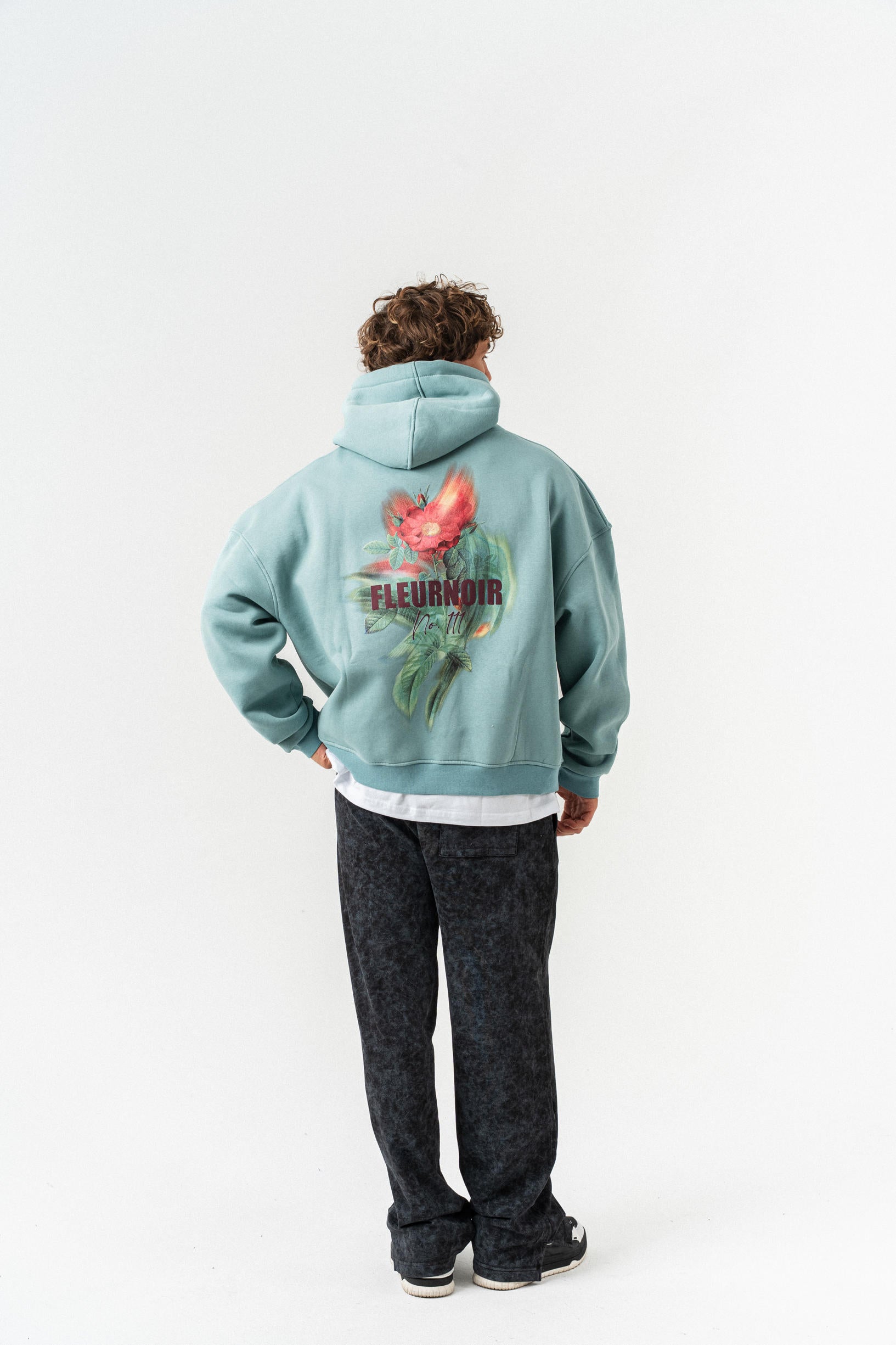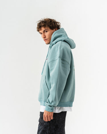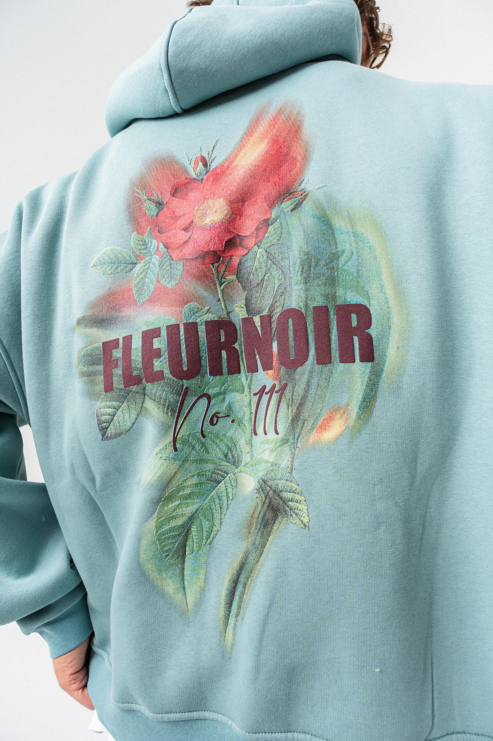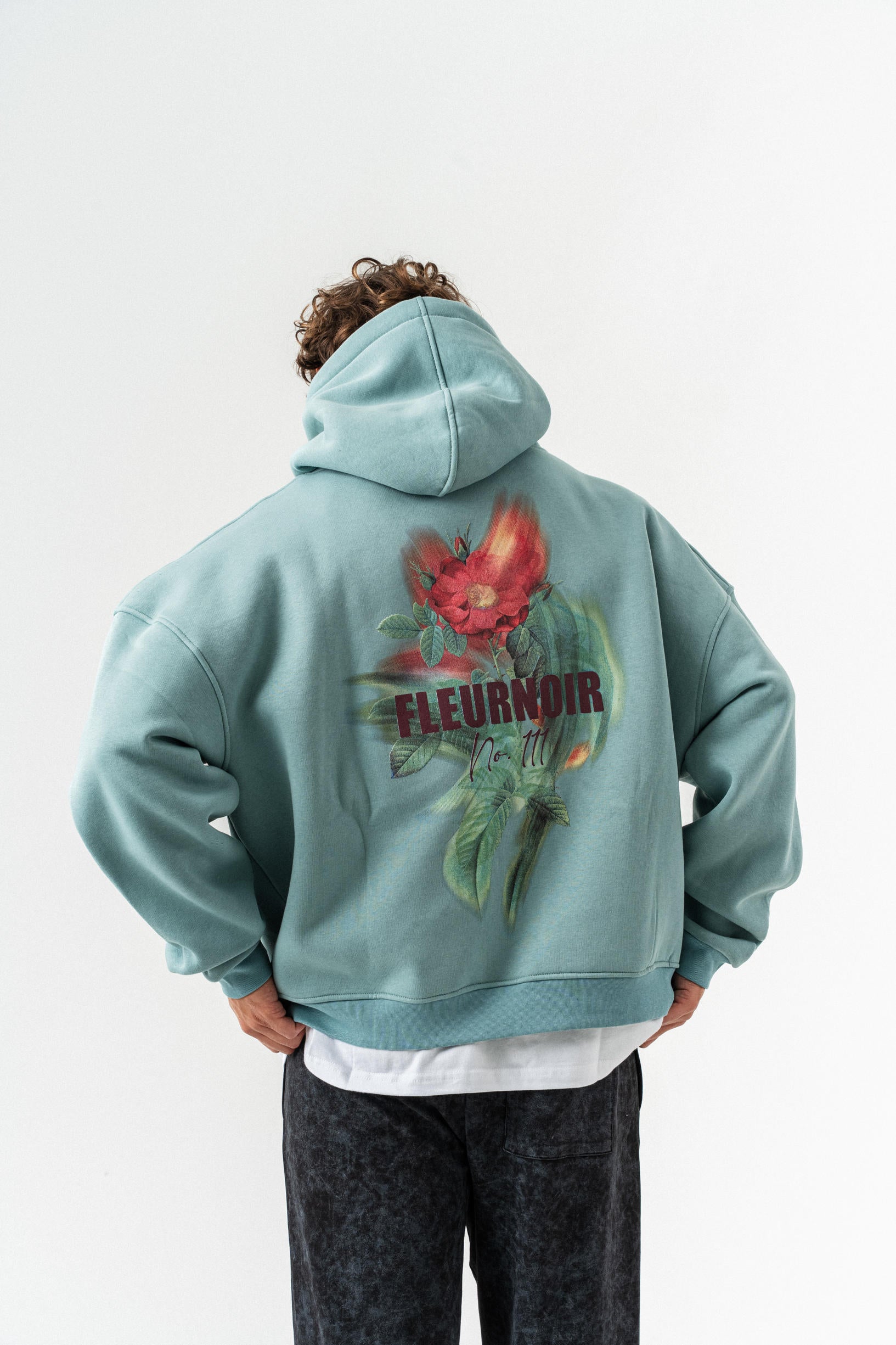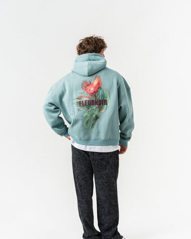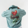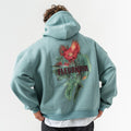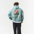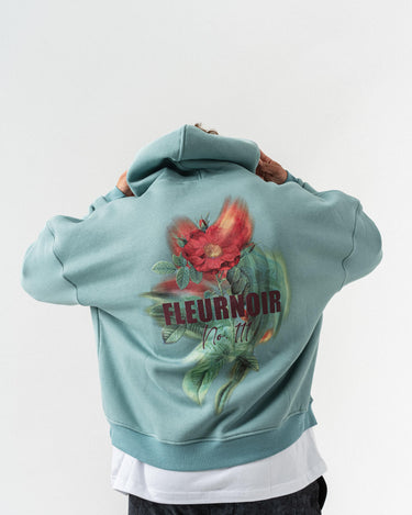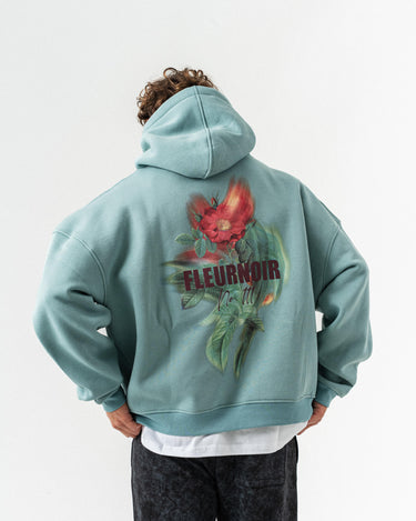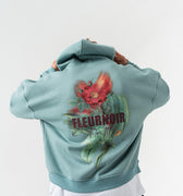 Çiçek Desenli Kapüşonlu Oversize Sweatshirt - Açık Yeşil