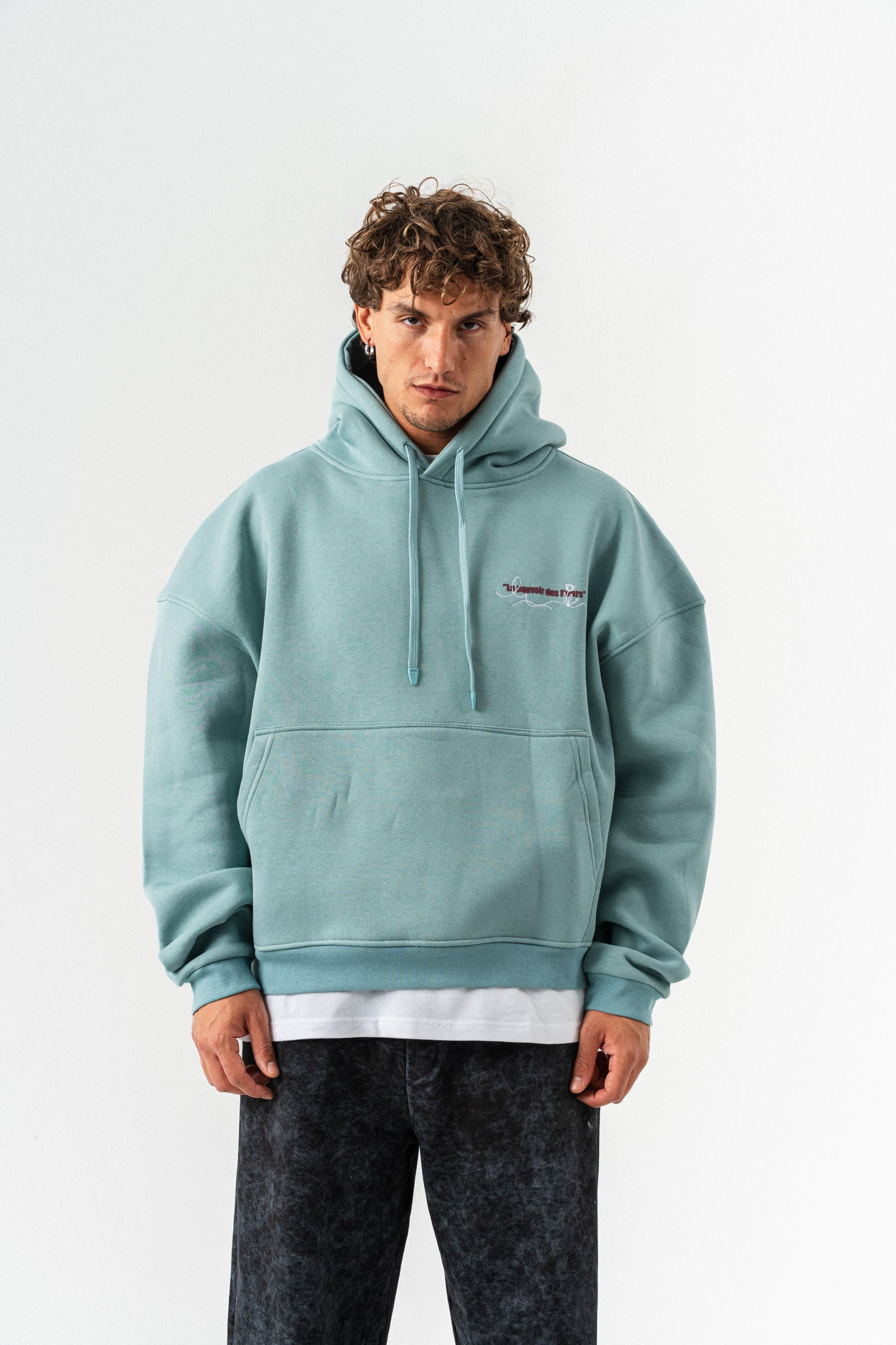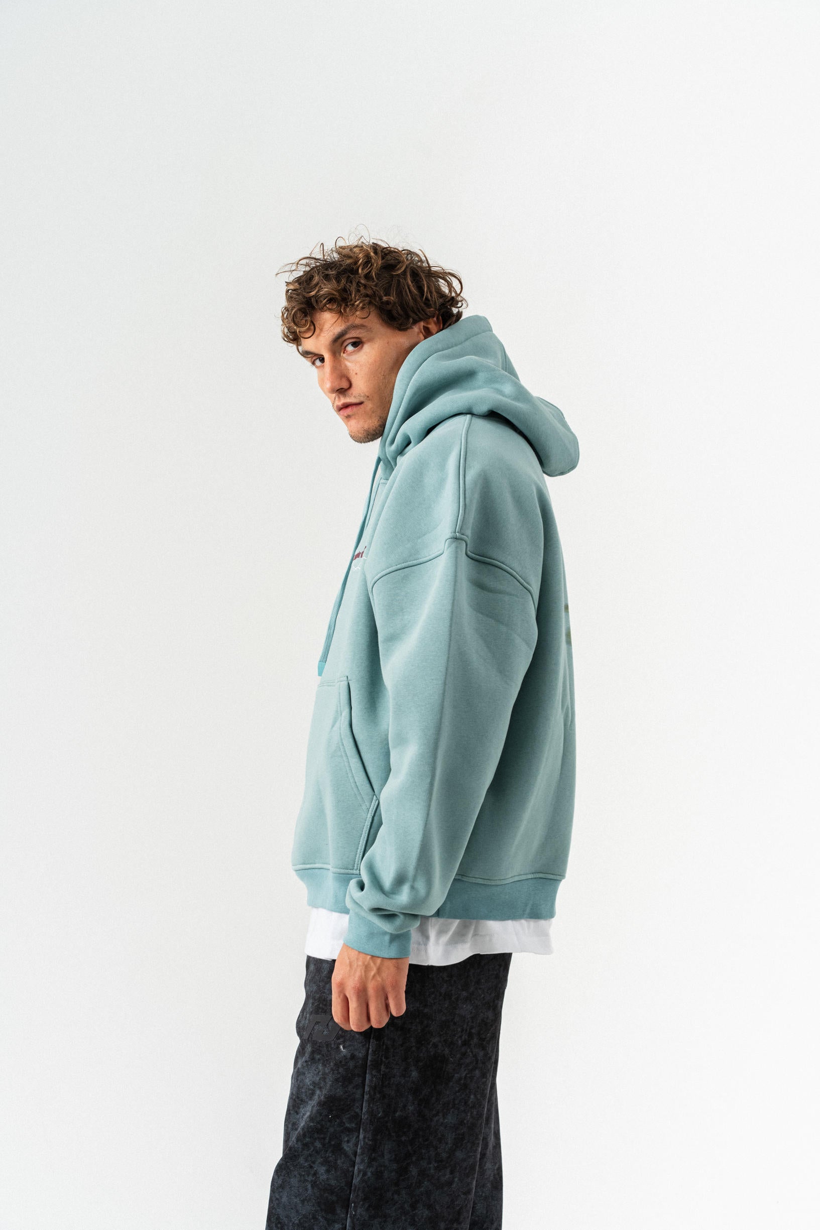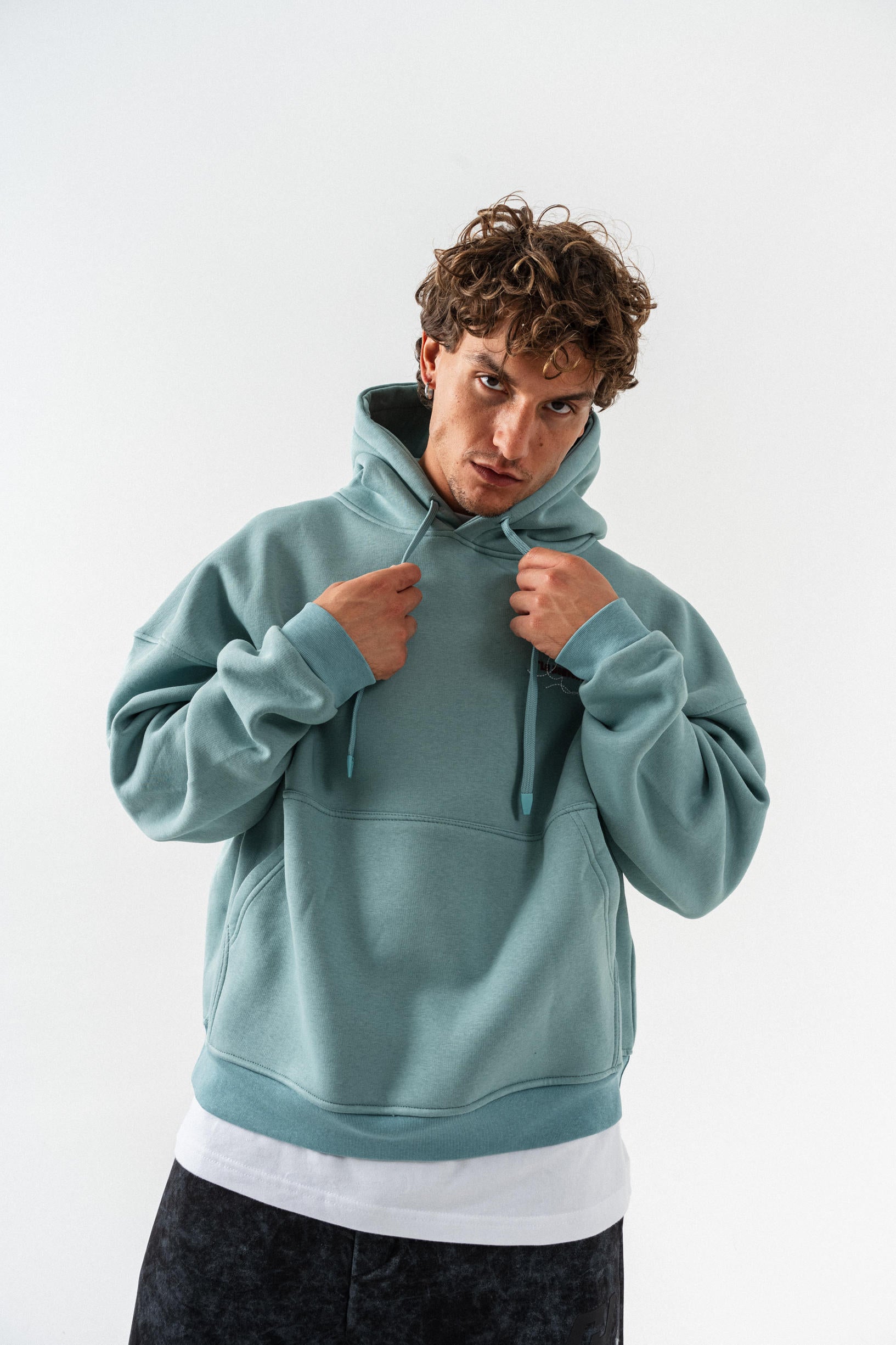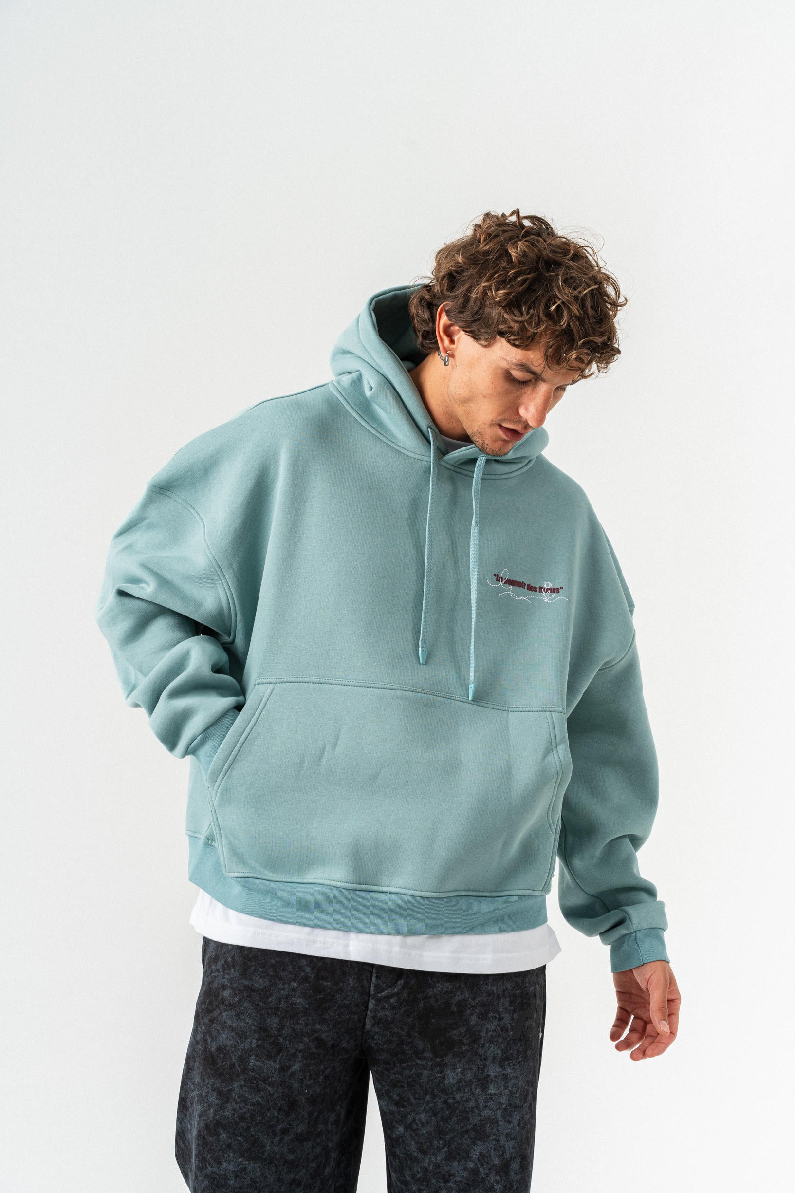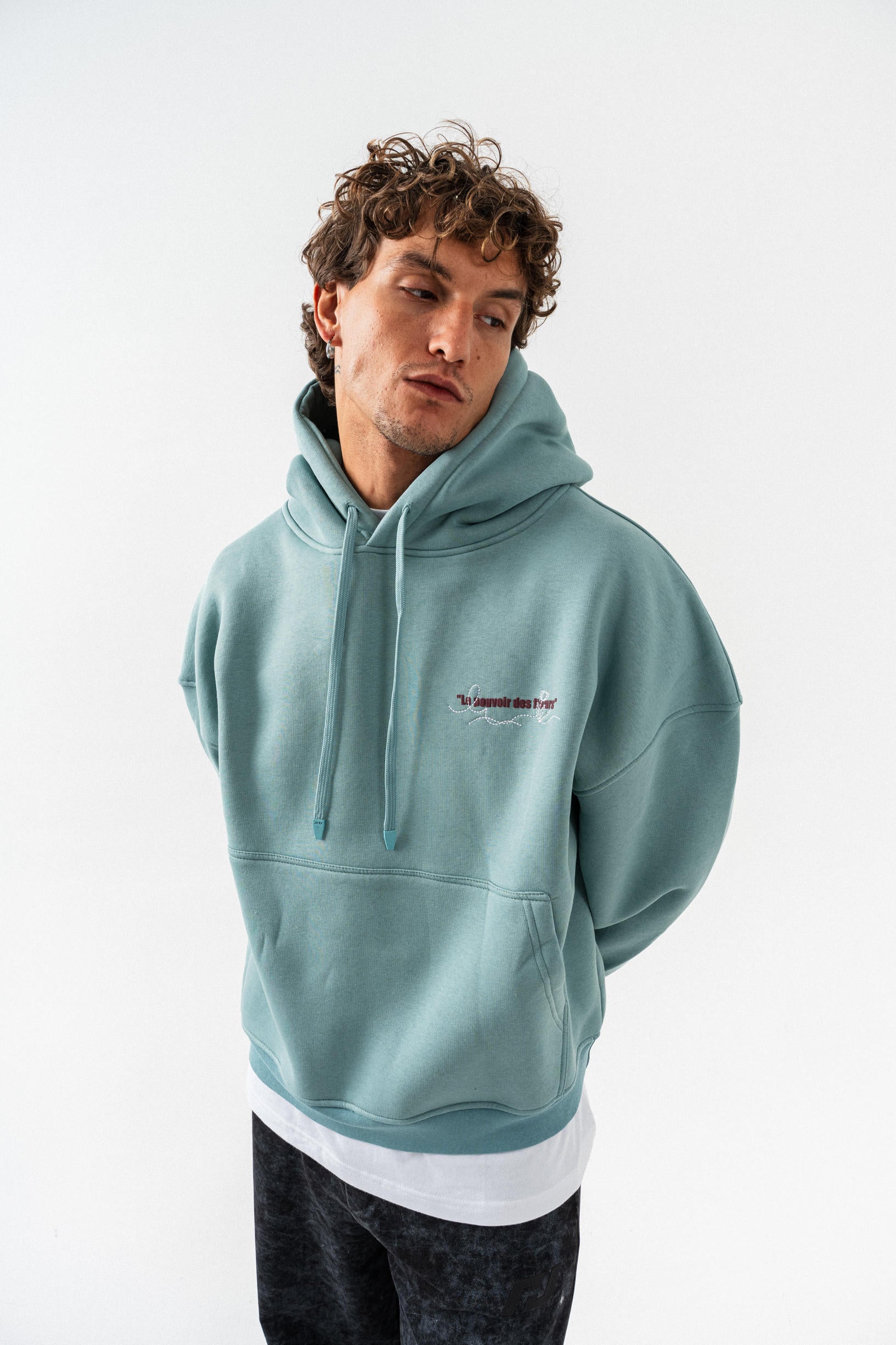 Çiçek Desenli Kapüşonlu Oversize Sweatshirt - Açık Yeşil