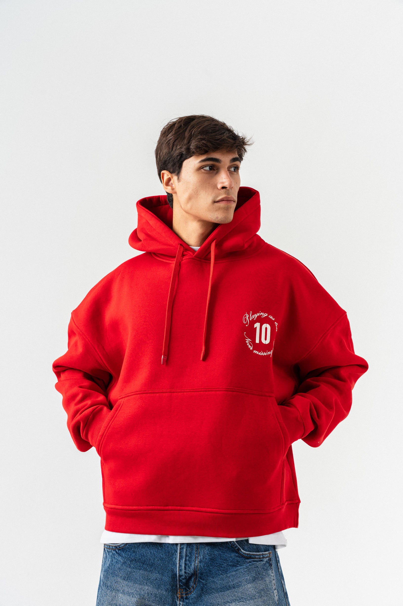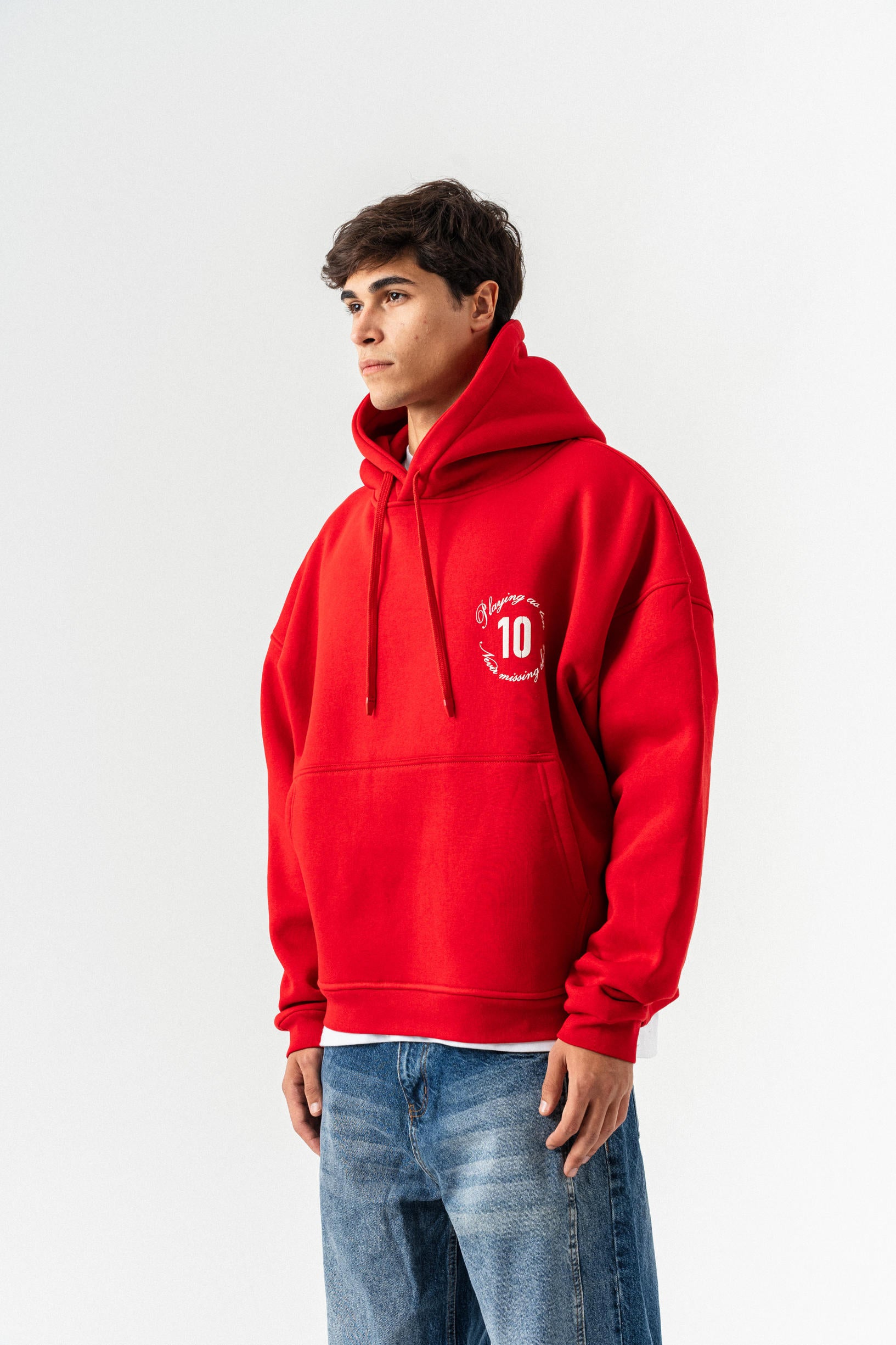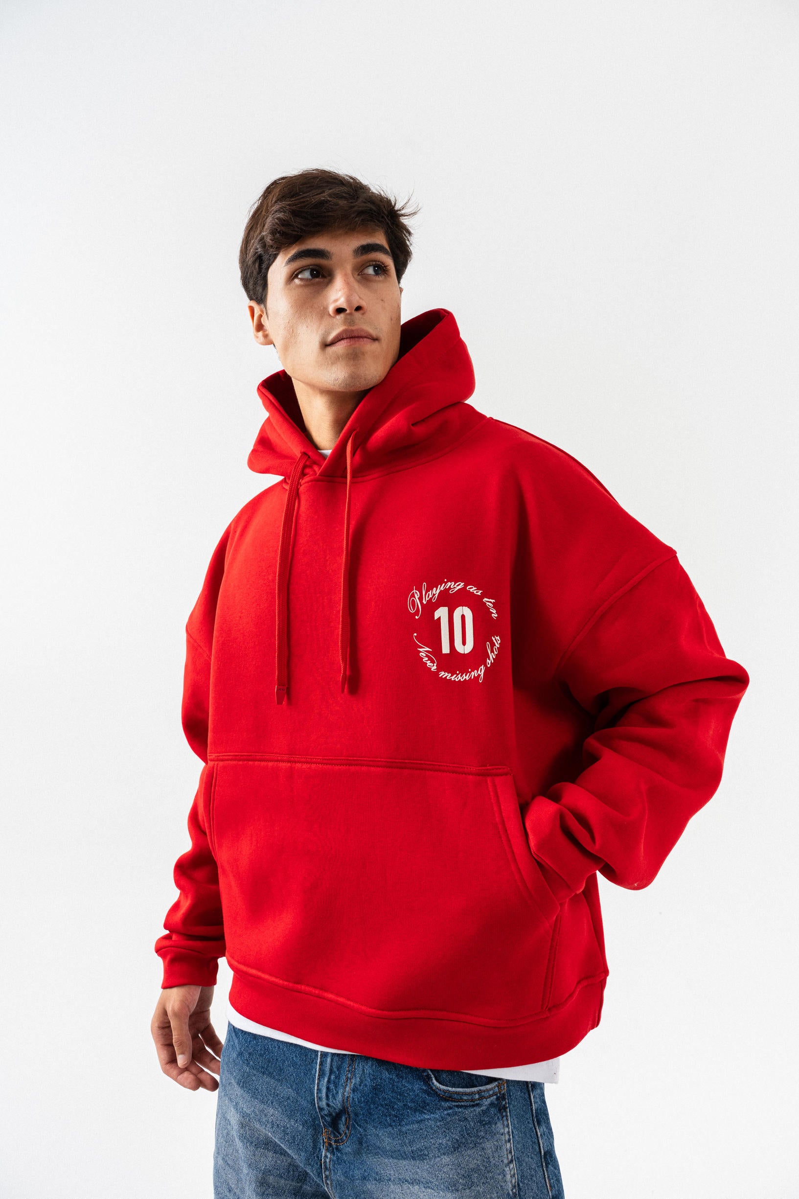 Playing 10 Kapüşonlu Oversize Sweatshirt - Kırmızı
