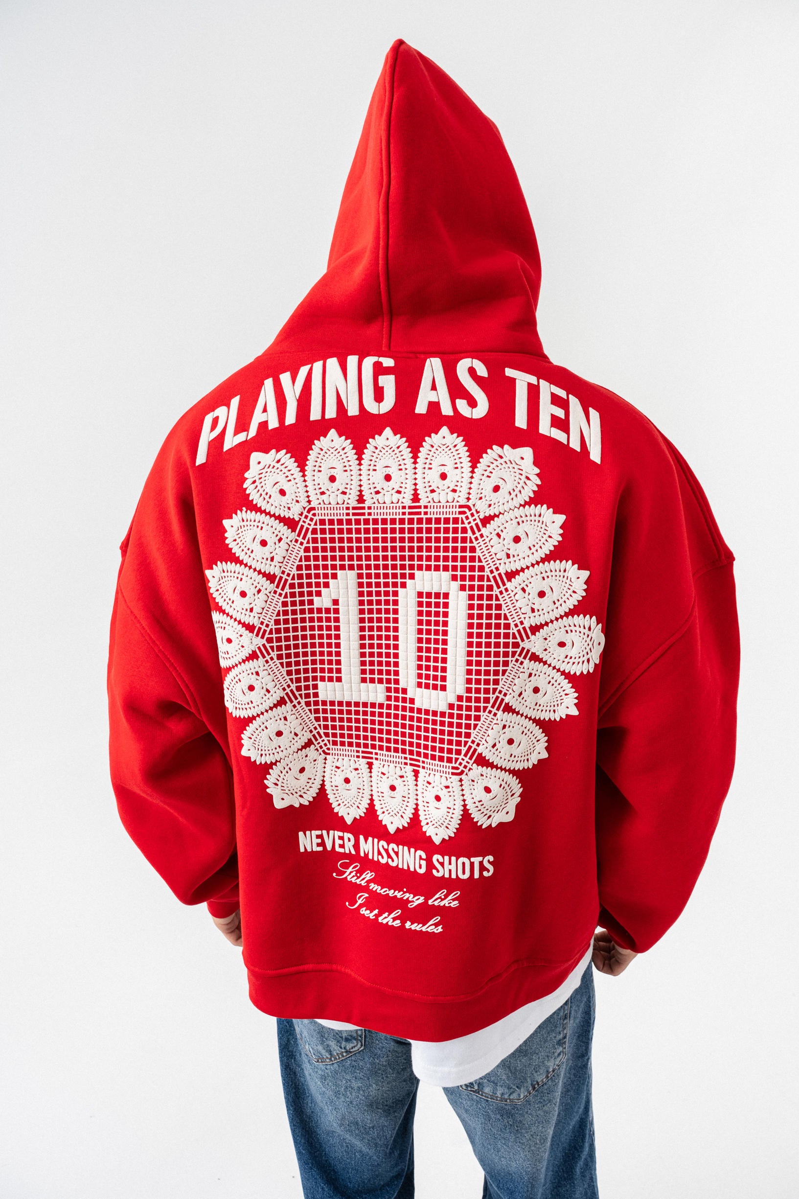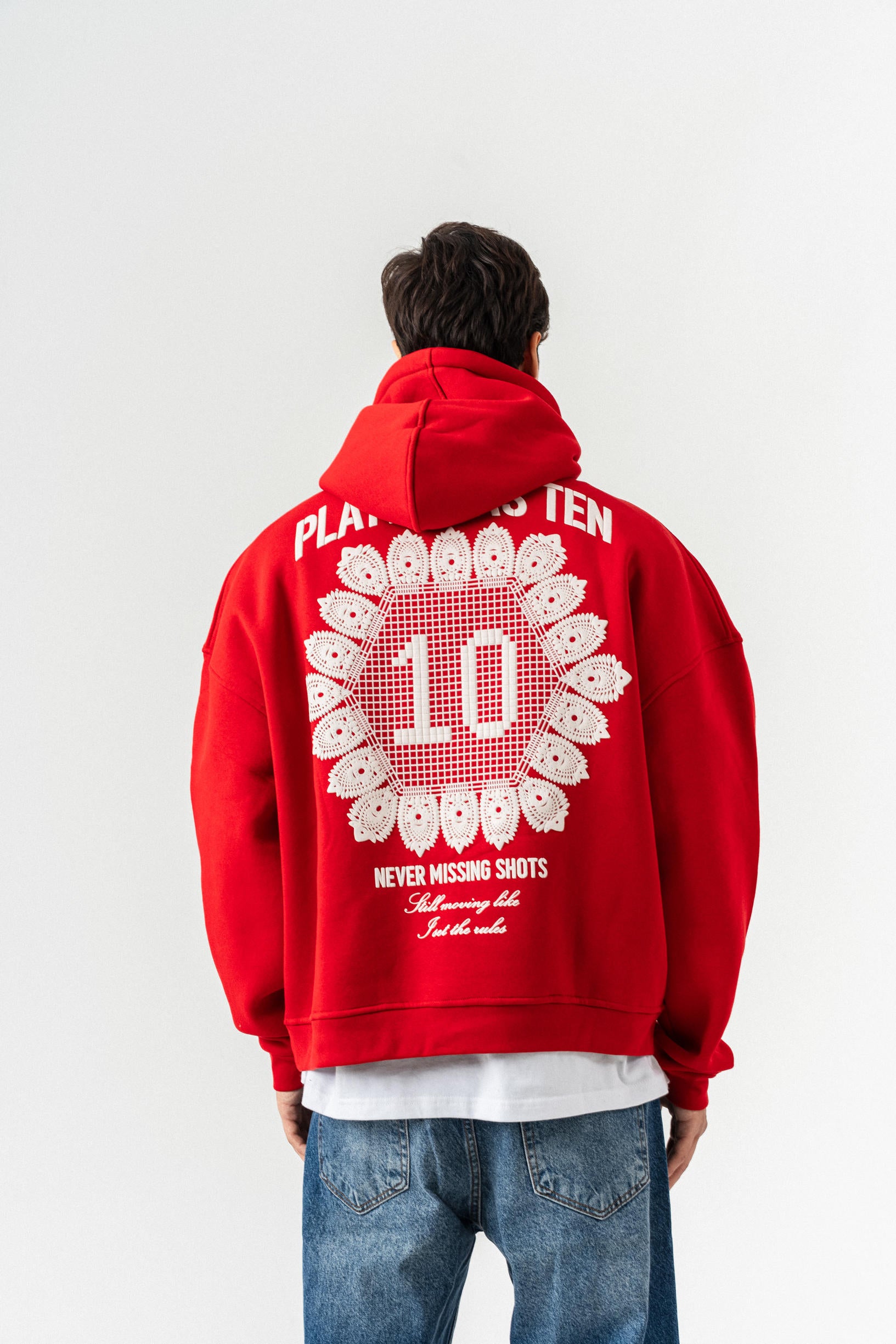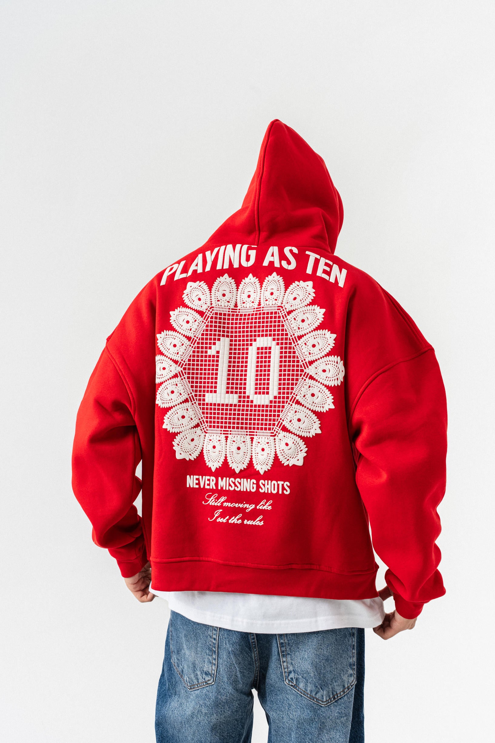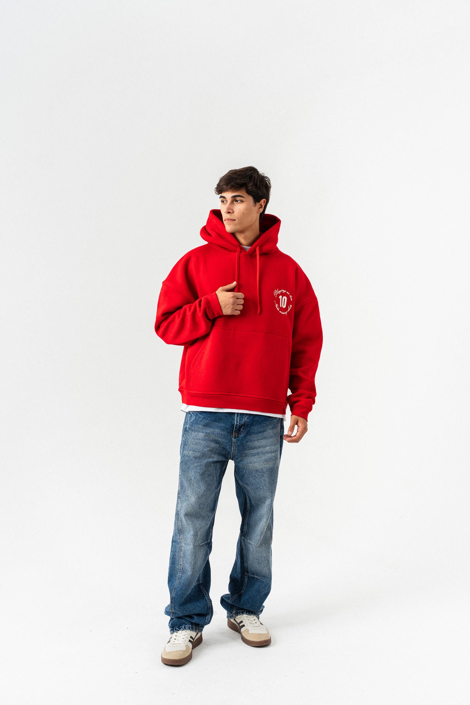 Playing 10 Kapüşonlu Oversize Sweatshirt - Kırmızı